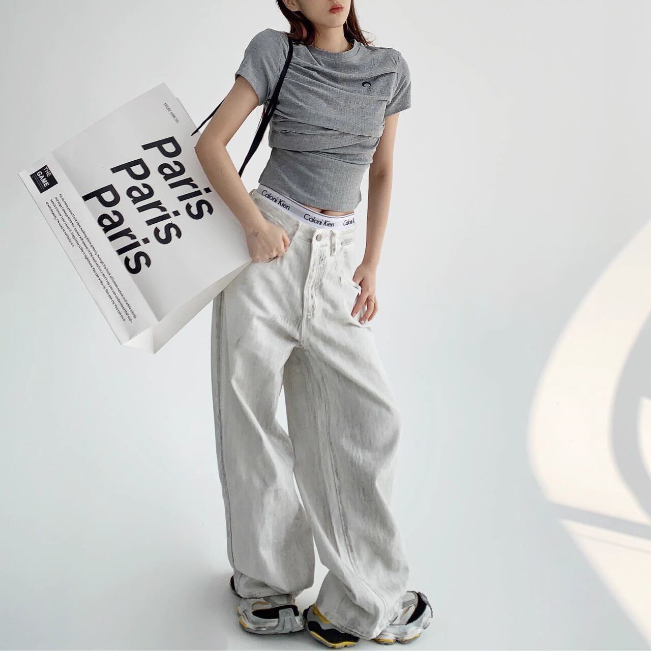 楽ちんな着心地と、おしゃれなシルエットを両立したワイドレッグデニムパンツ。