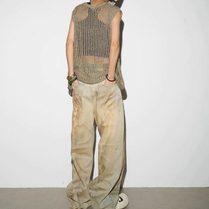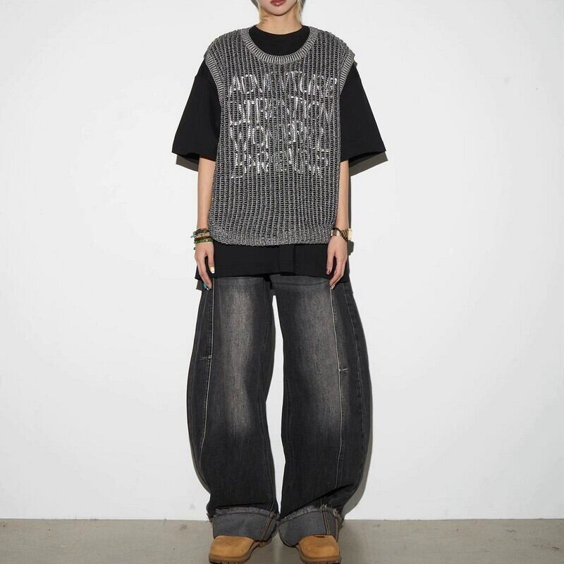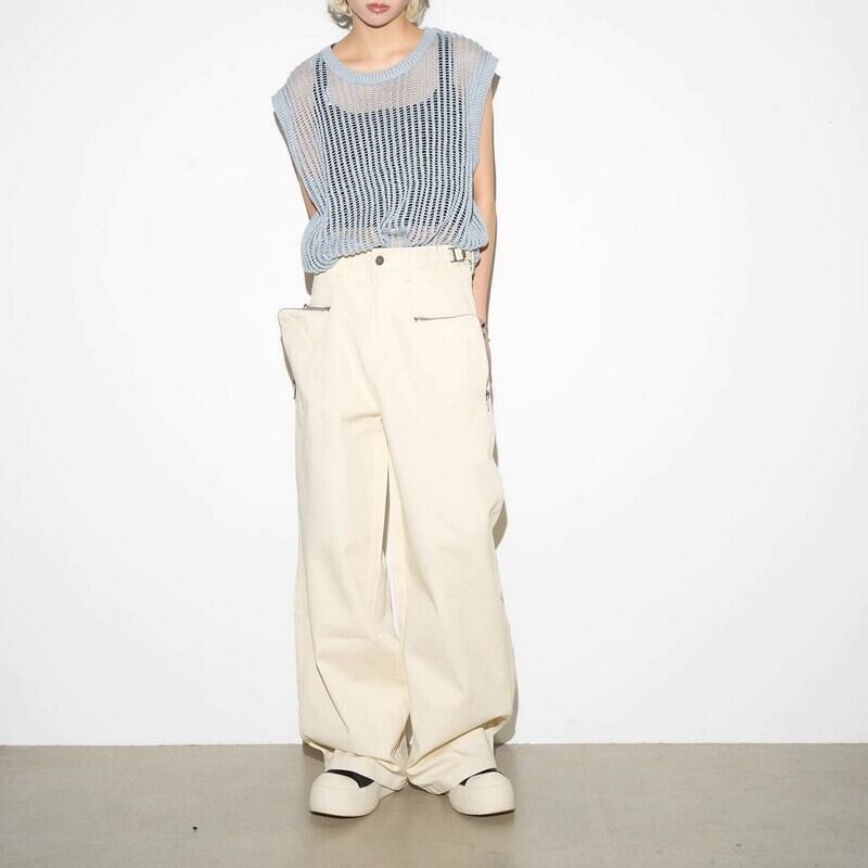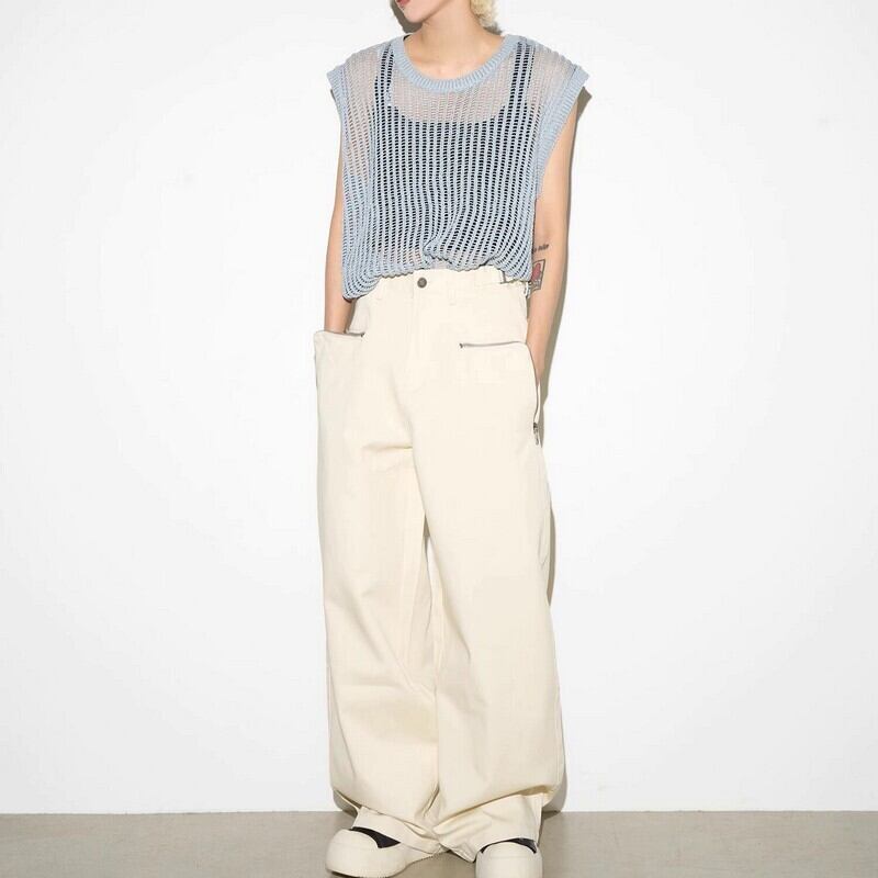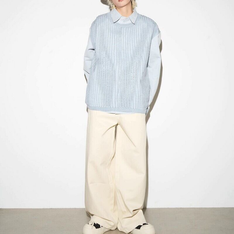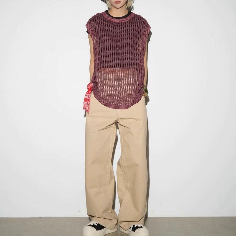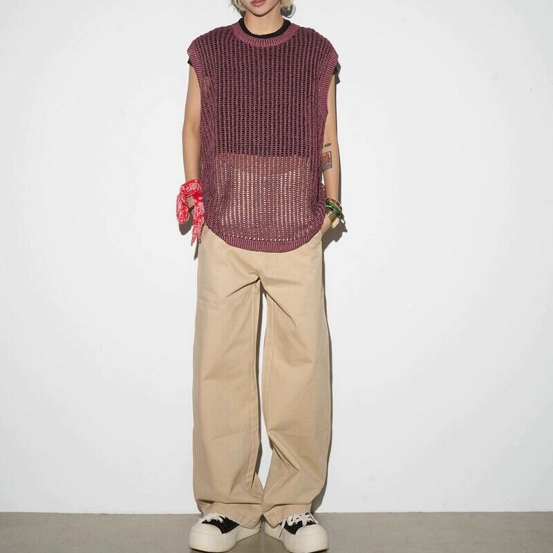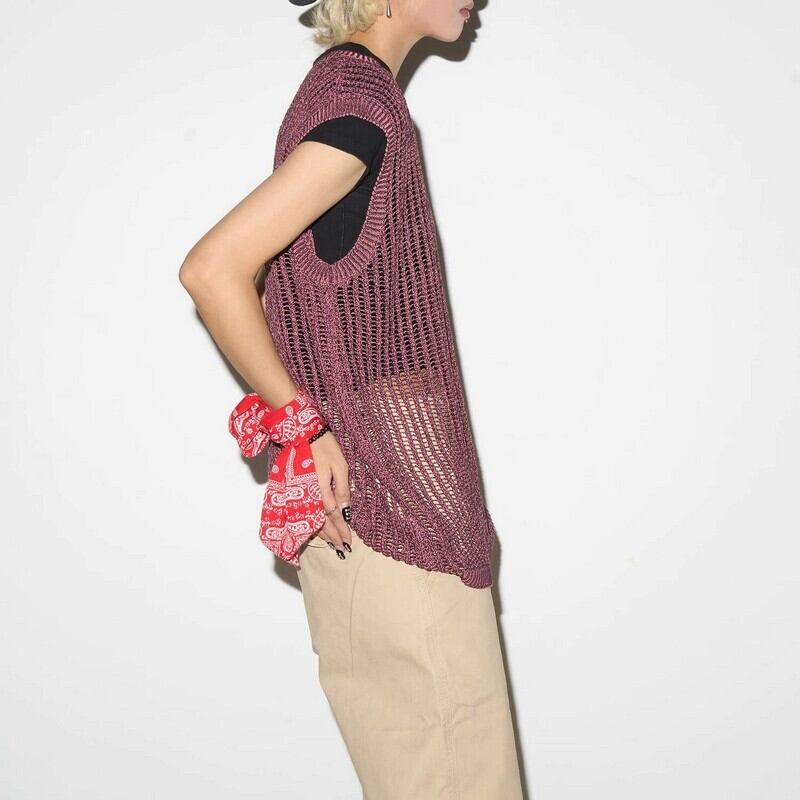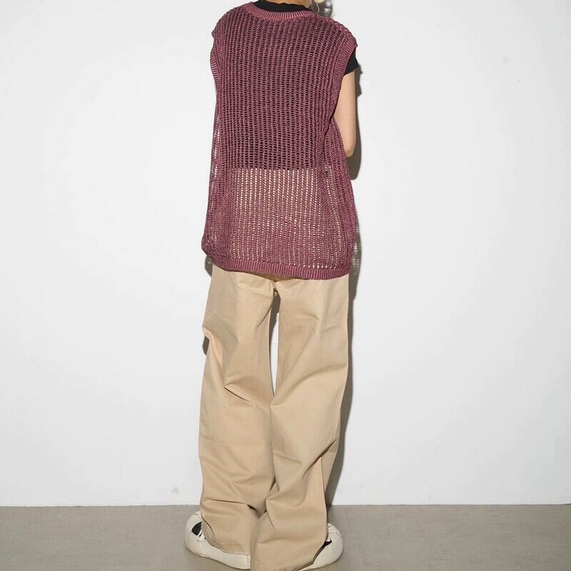 トレンド感あふれるメッシュニットのオーバーサイズノースリーブトップス。