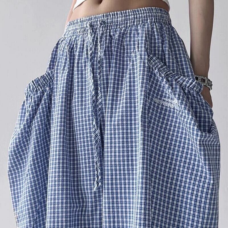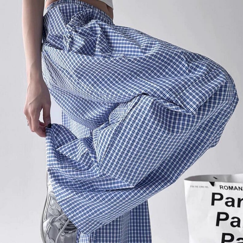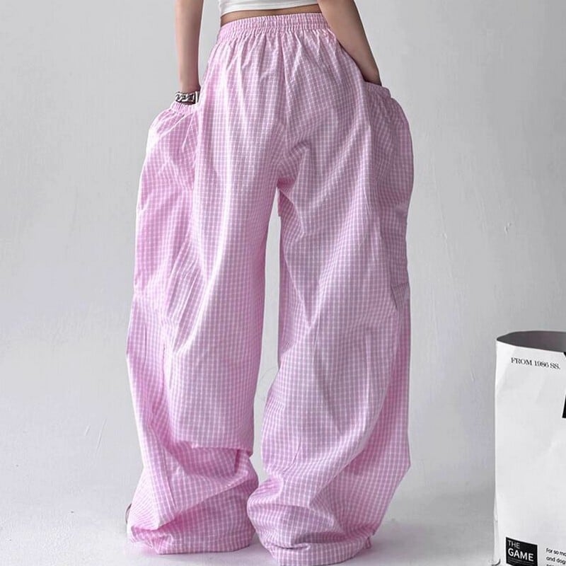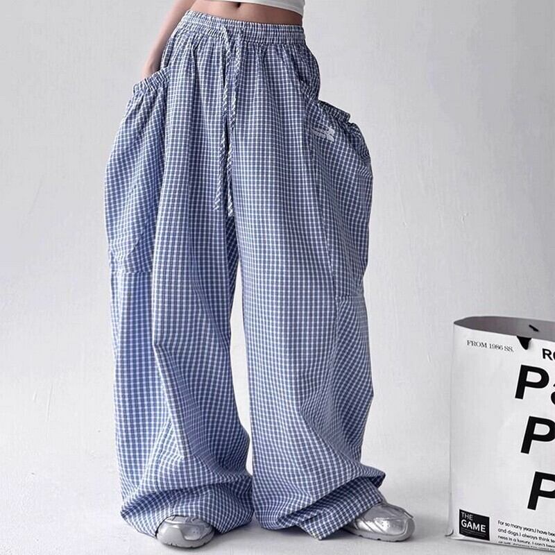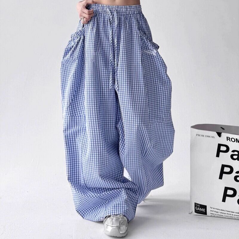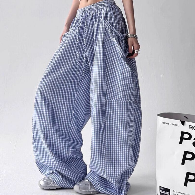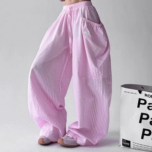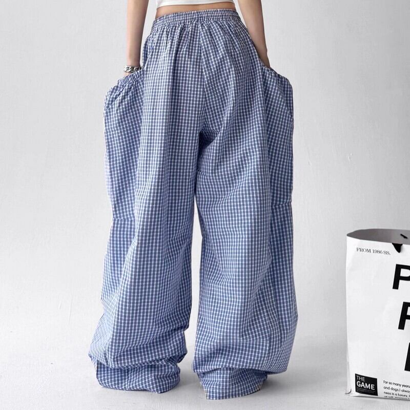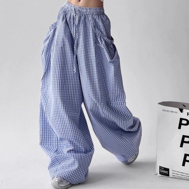 レトロチェック柄ワイドレッグカジュアルパンツ B0239