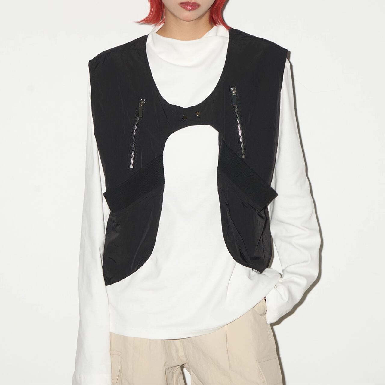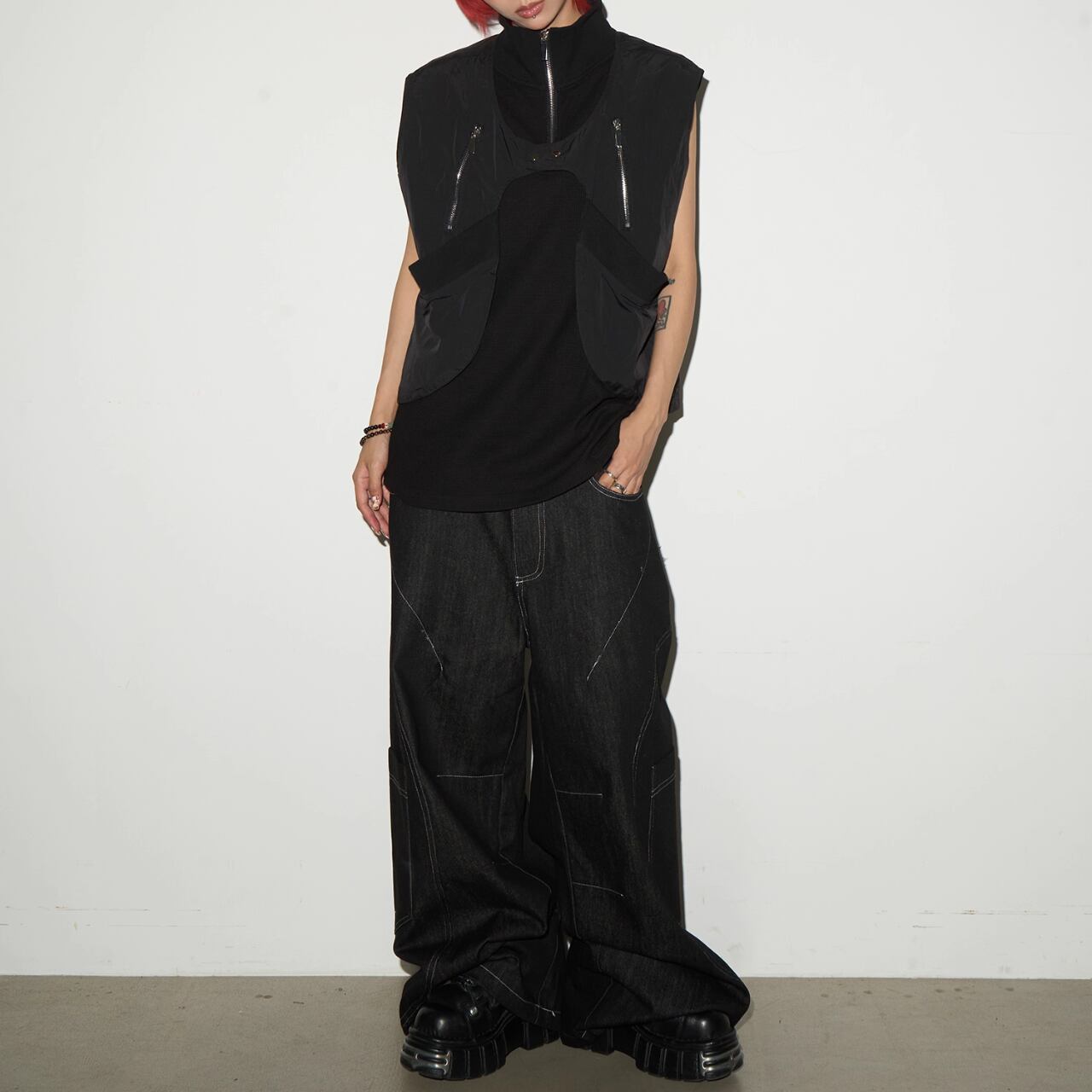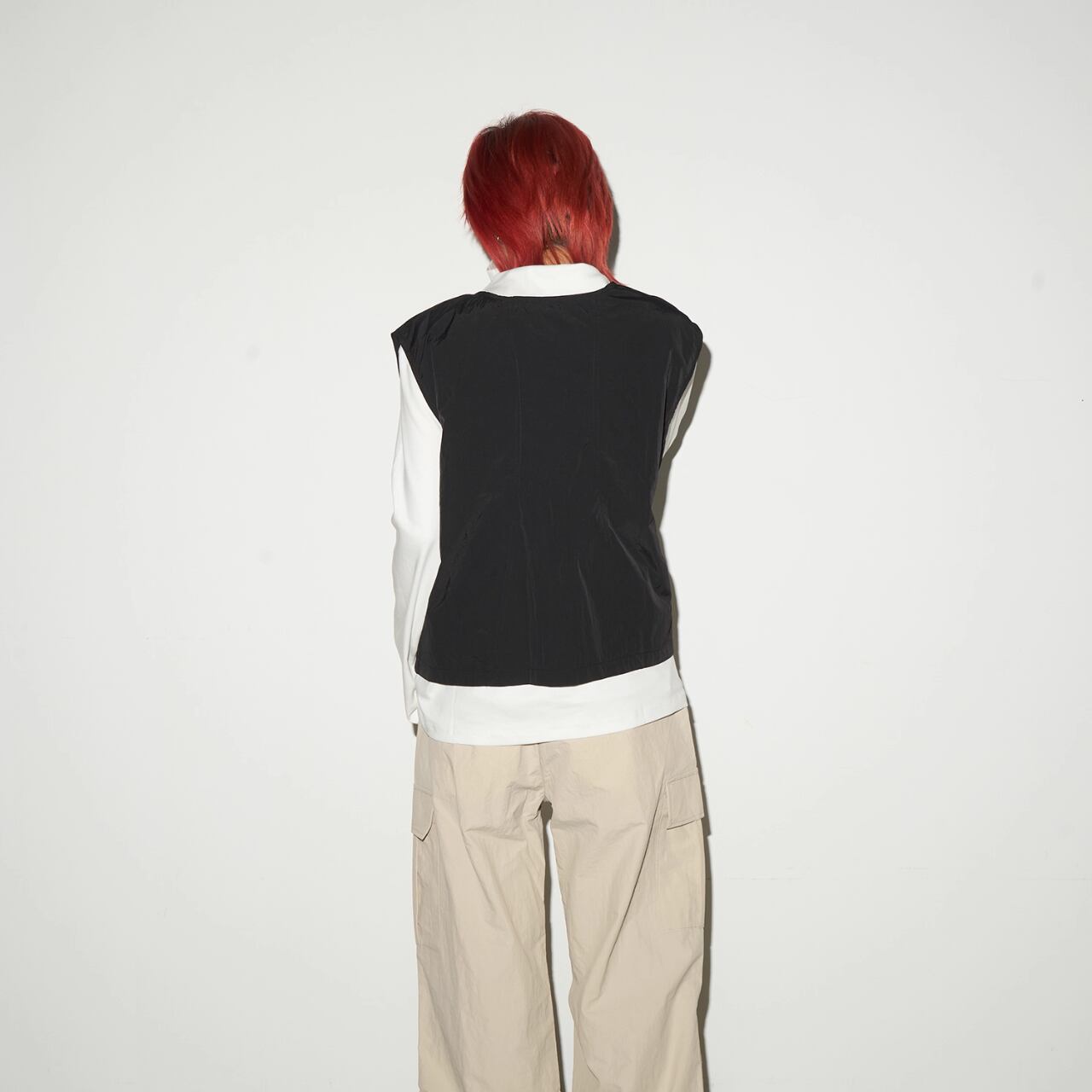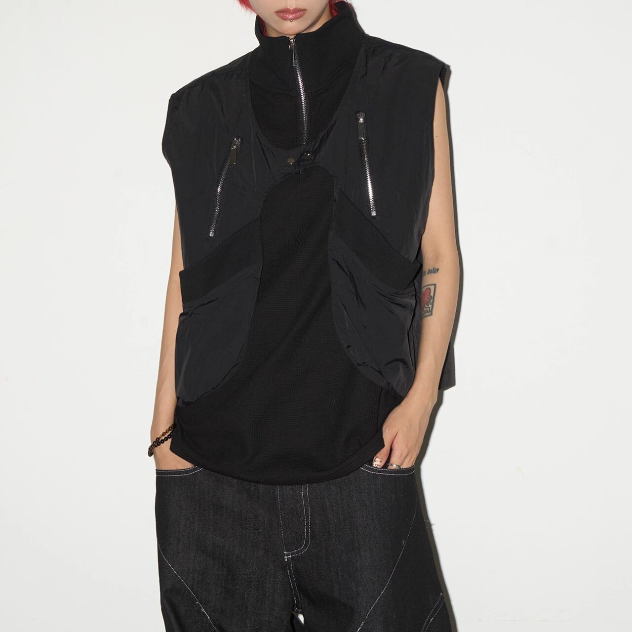 ハーフジップディテールが特徴的なノースリーブ&レイヤードベストのツーピースセット!
