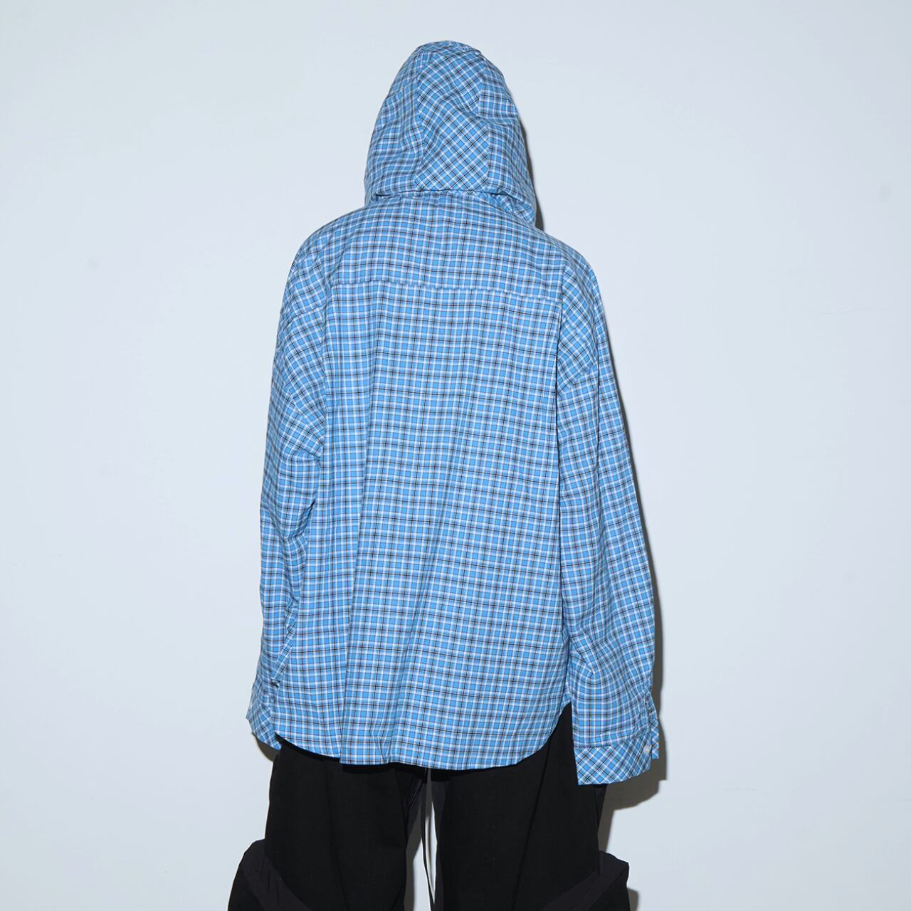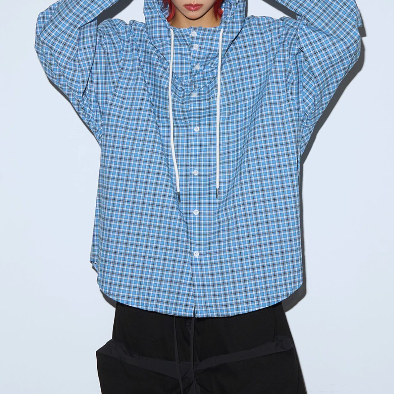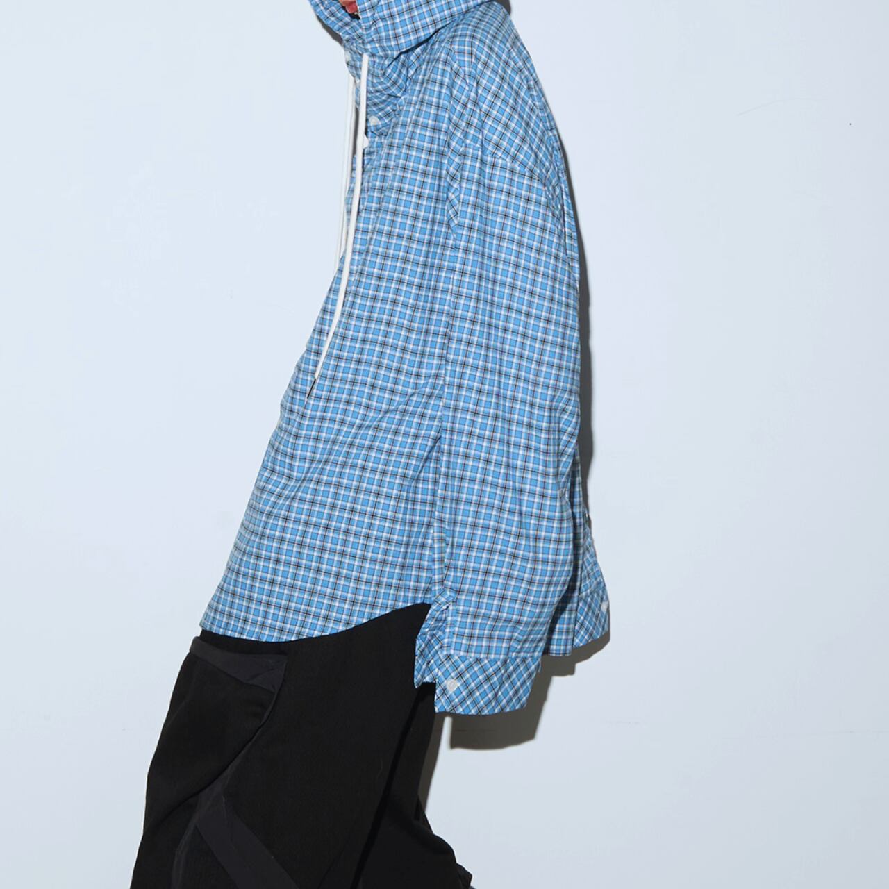爽やかなチェック柄とフードが特徴的なシャツ。