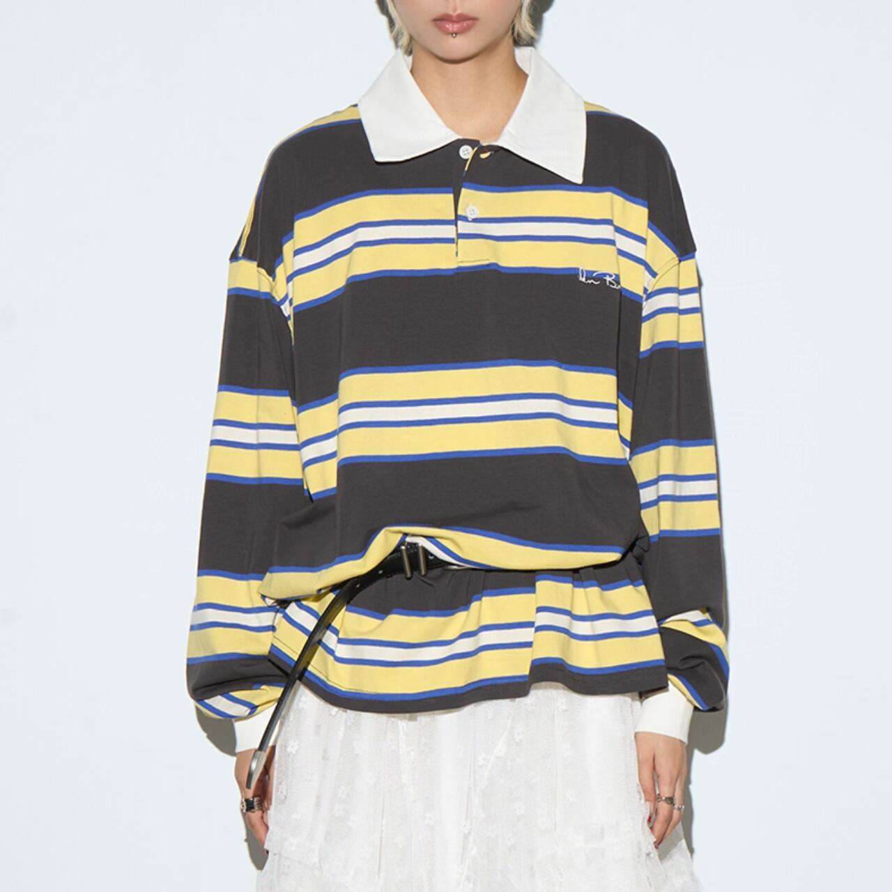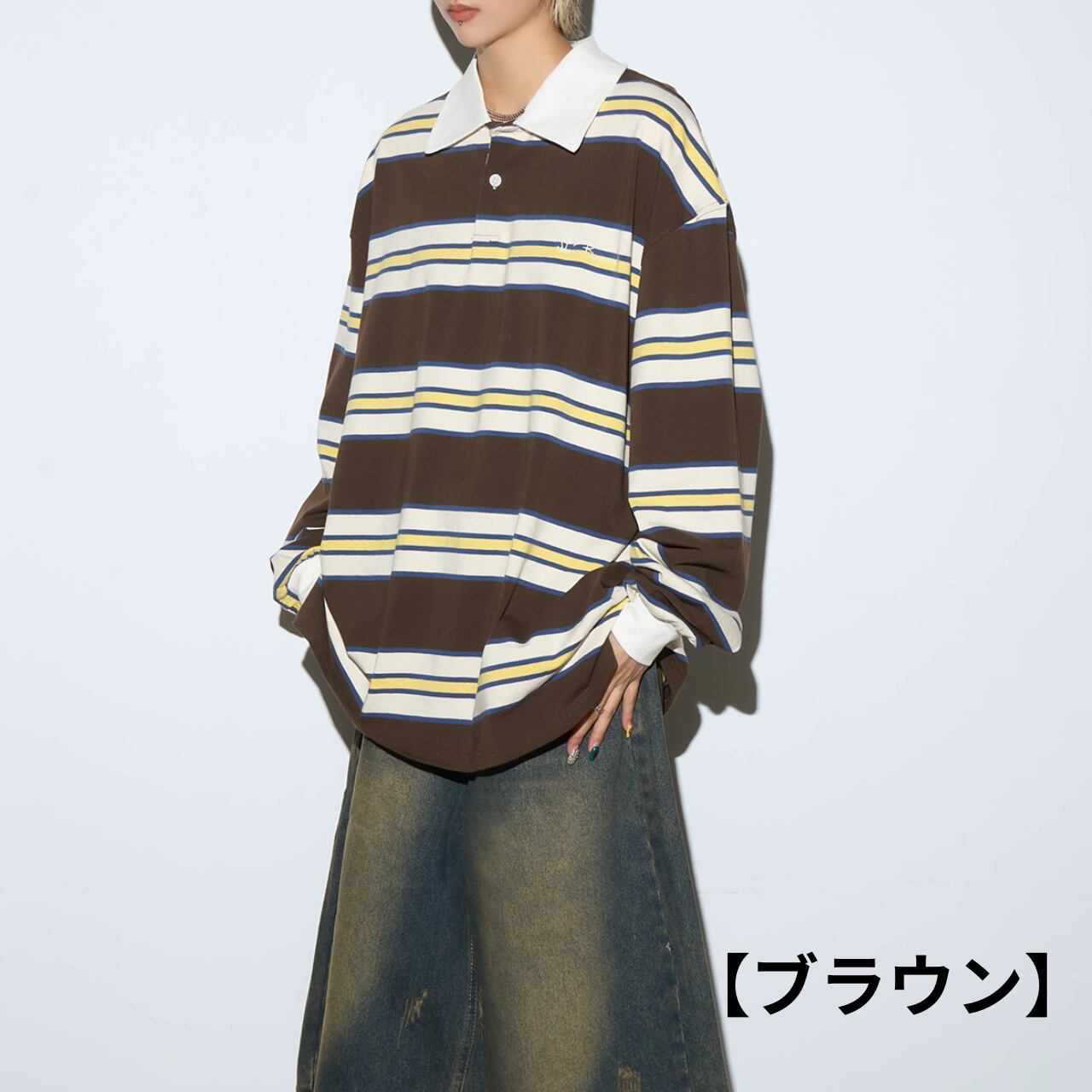 ボーダーポロカラーラガーシャツ【S/M/L/XL】B0365