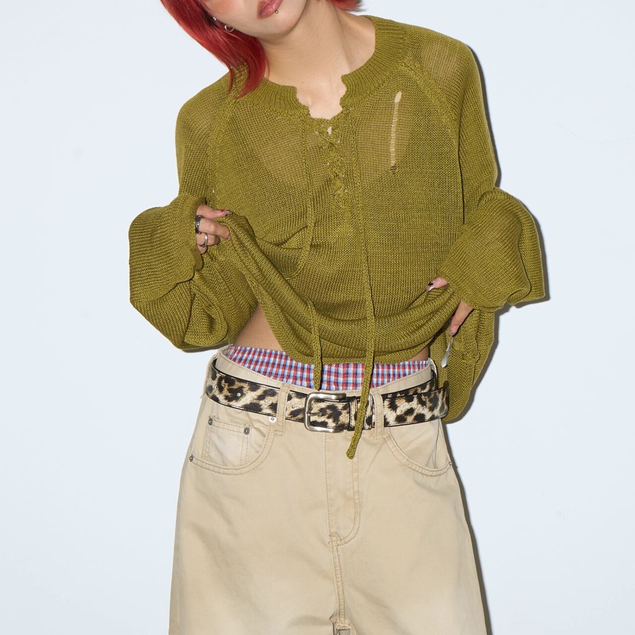 キャミソールやTシャツとのレイヤードも楽しめます。