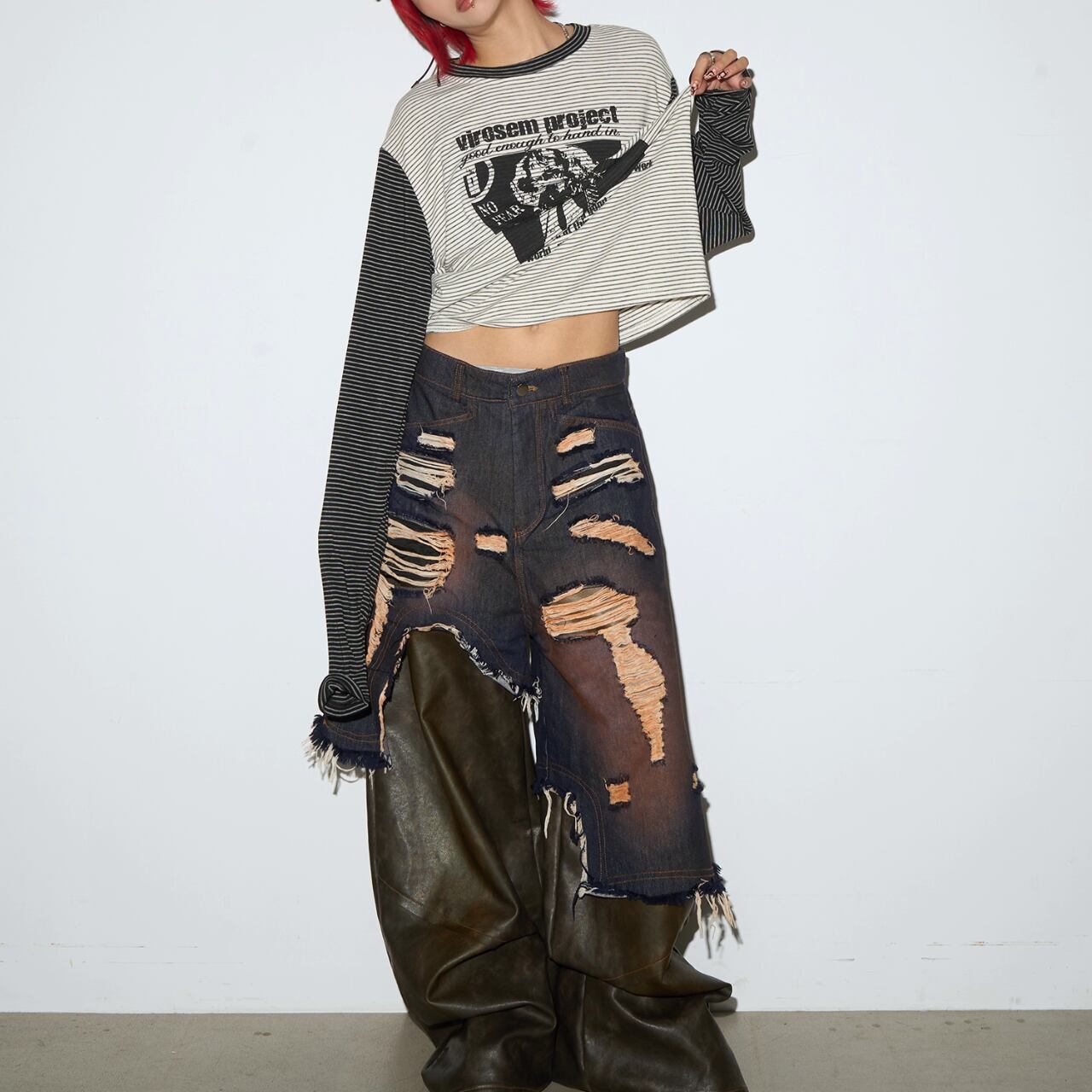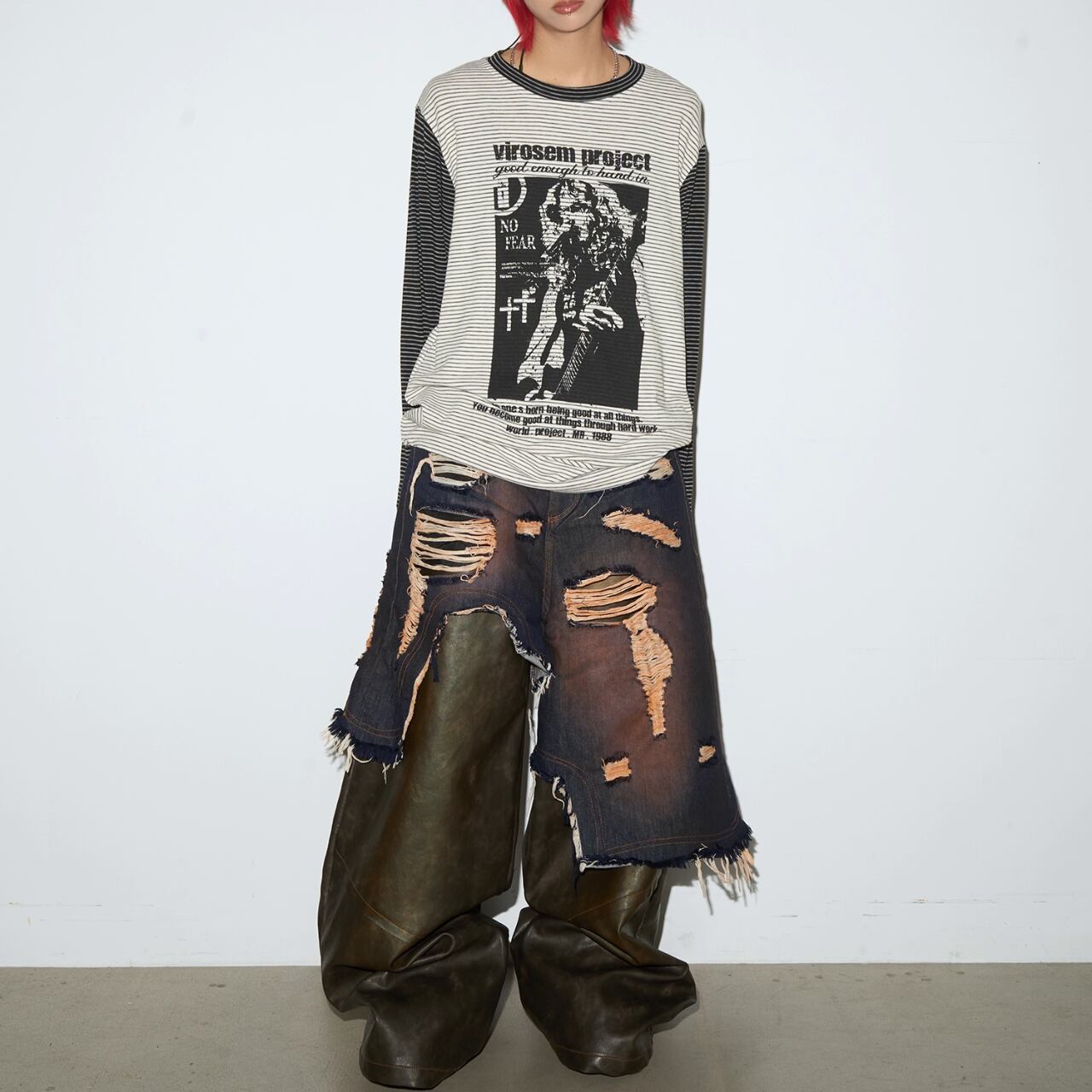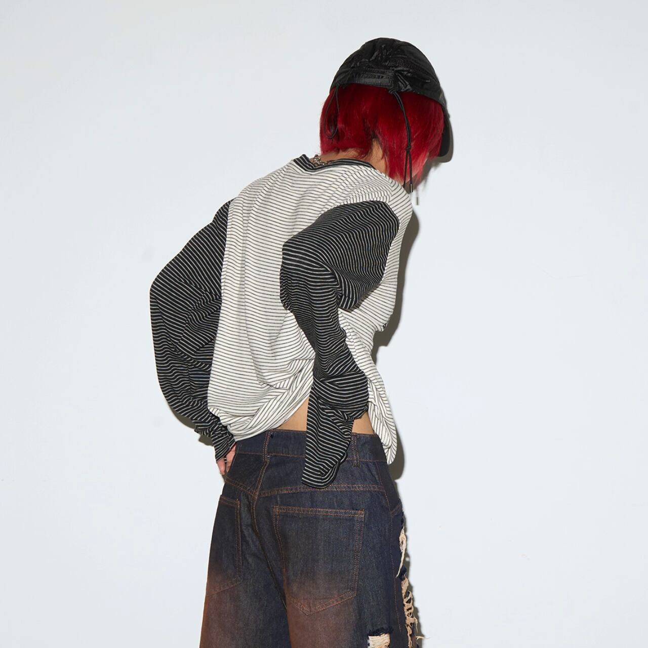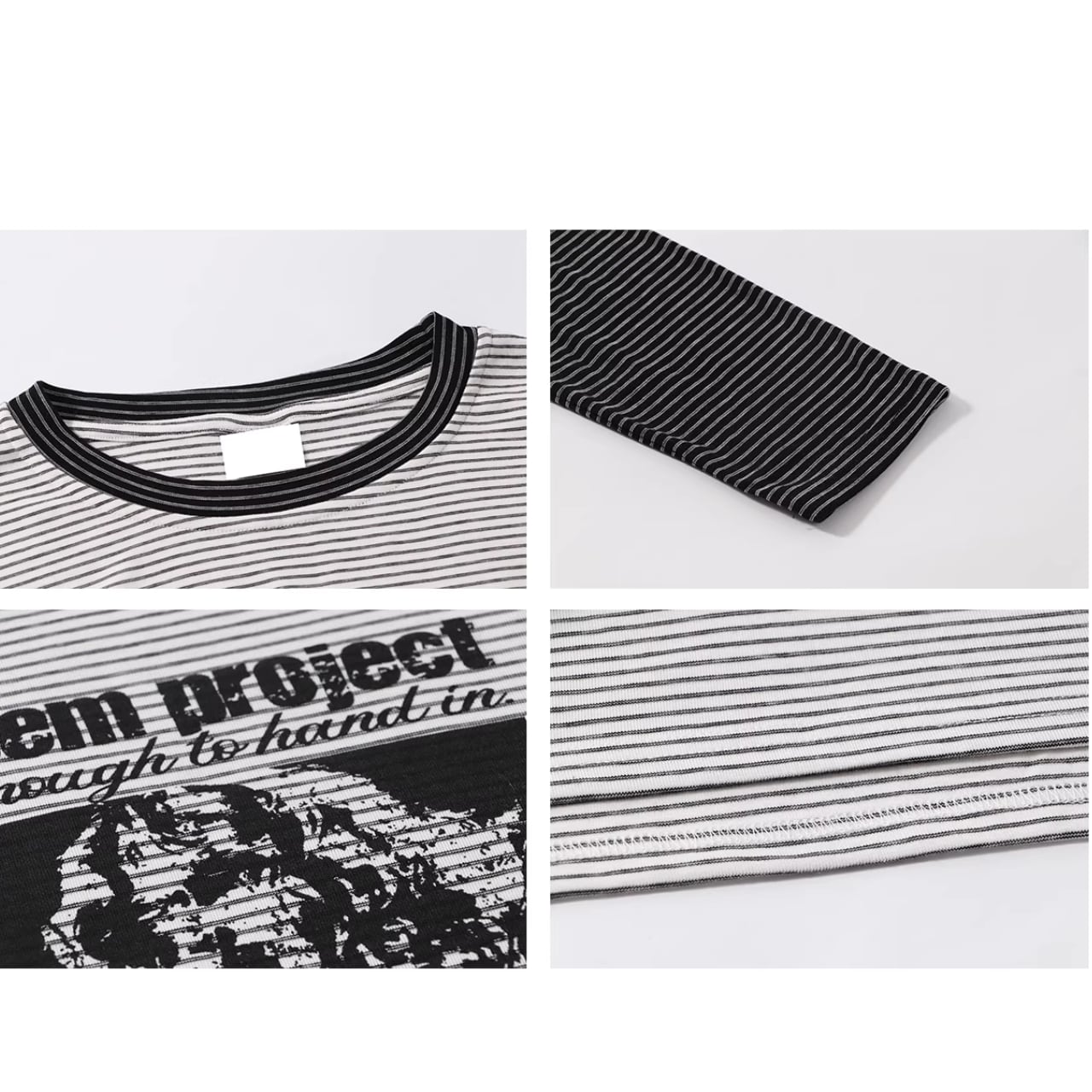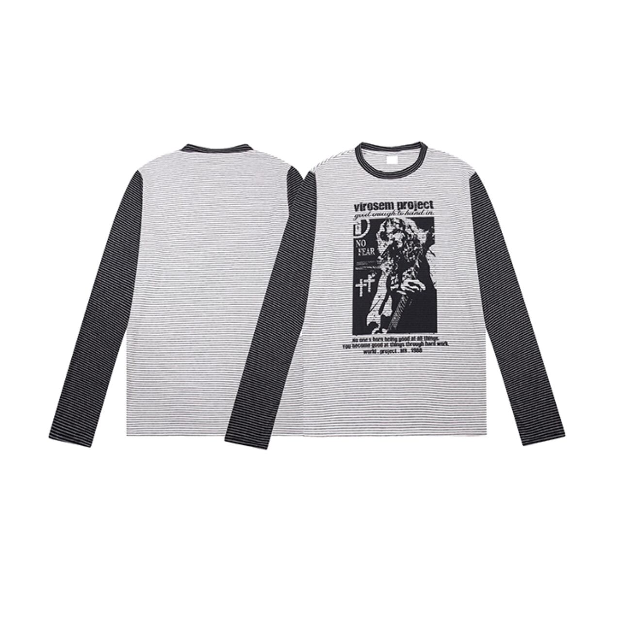 グラフィックプリントが特徴的なロングスリーブTシャツです。