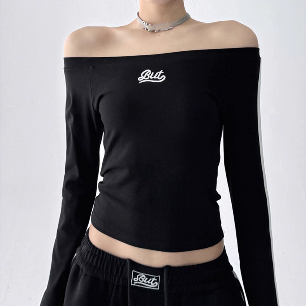 肩を大胆に見せるオフショルダーデザインが魅力のロングスリーブトップス。