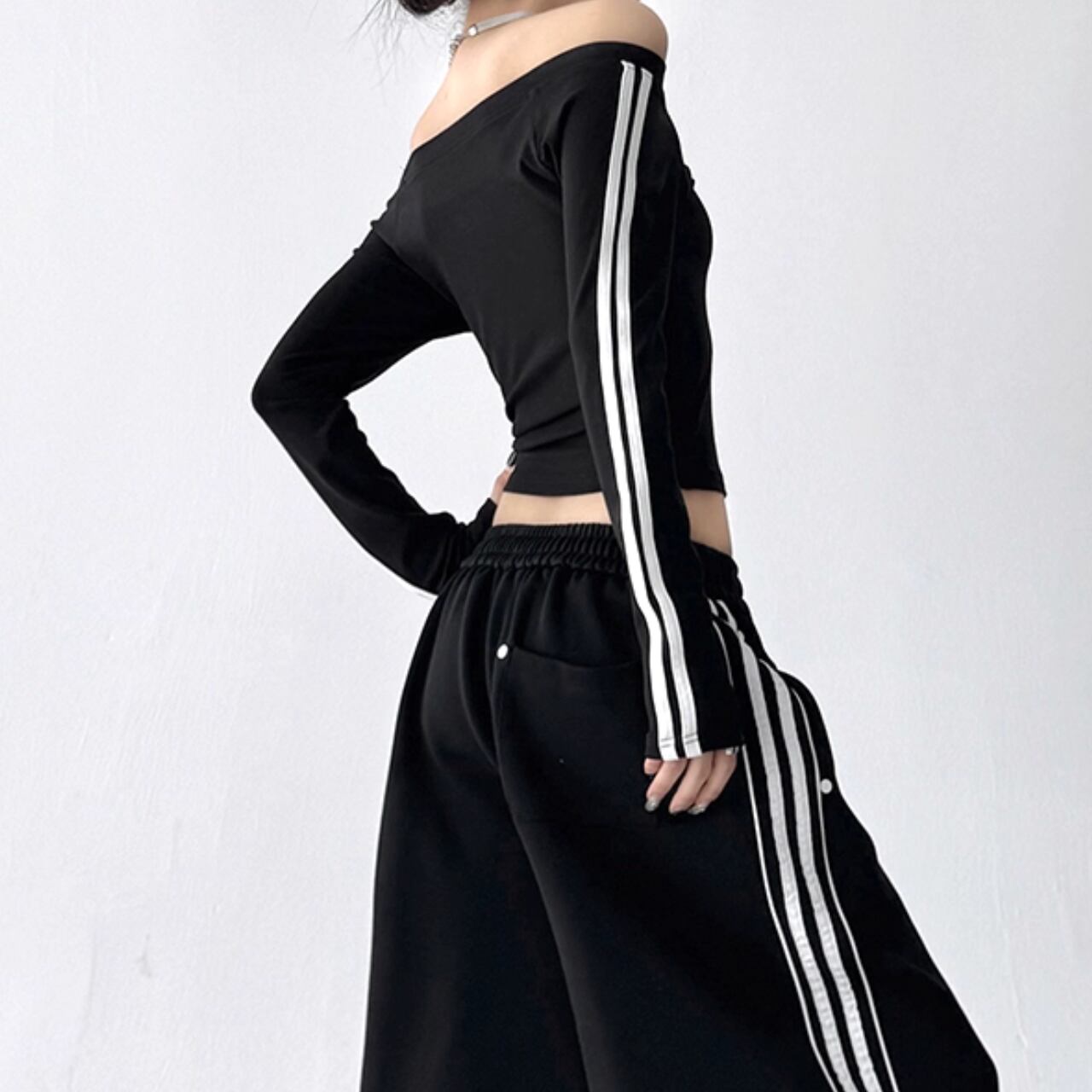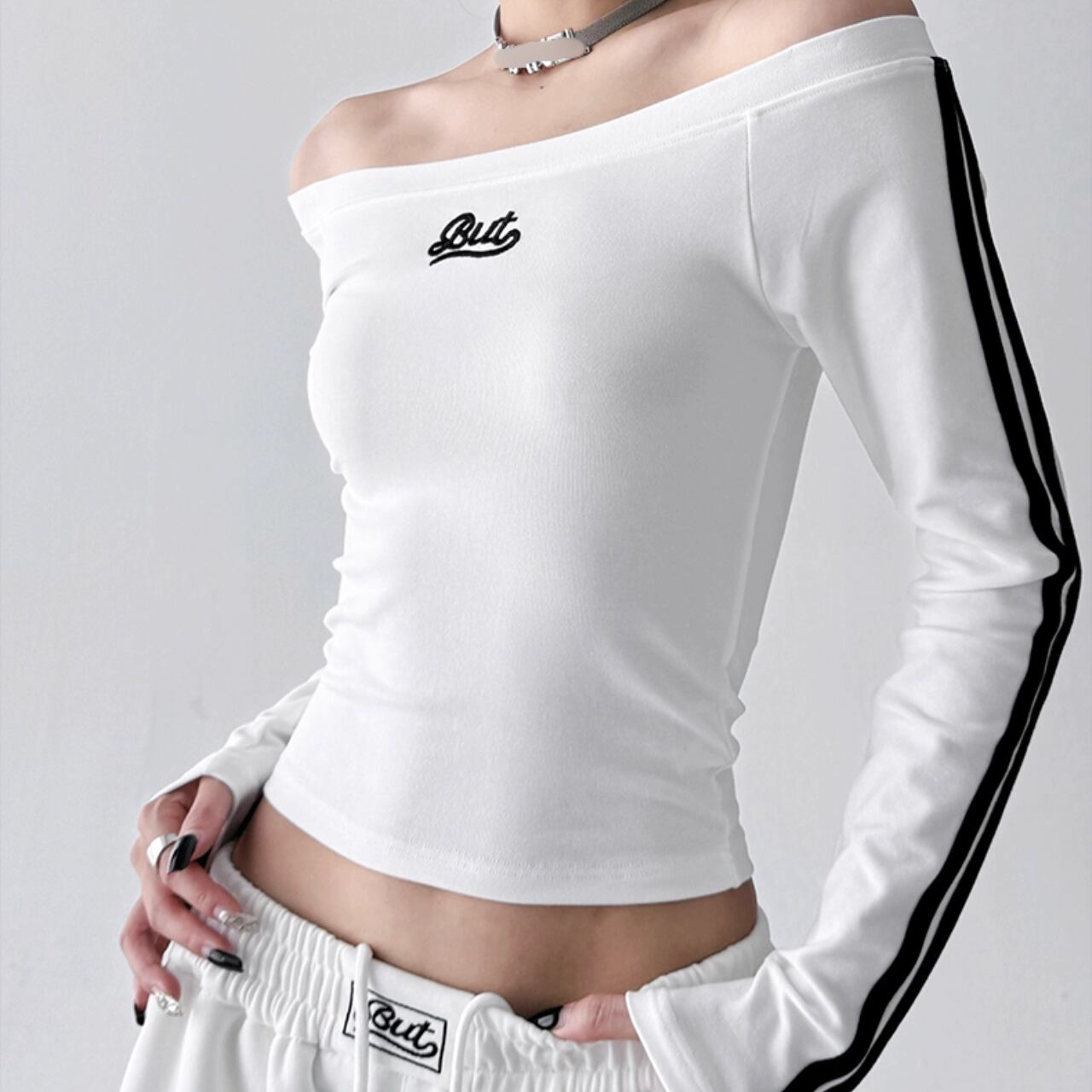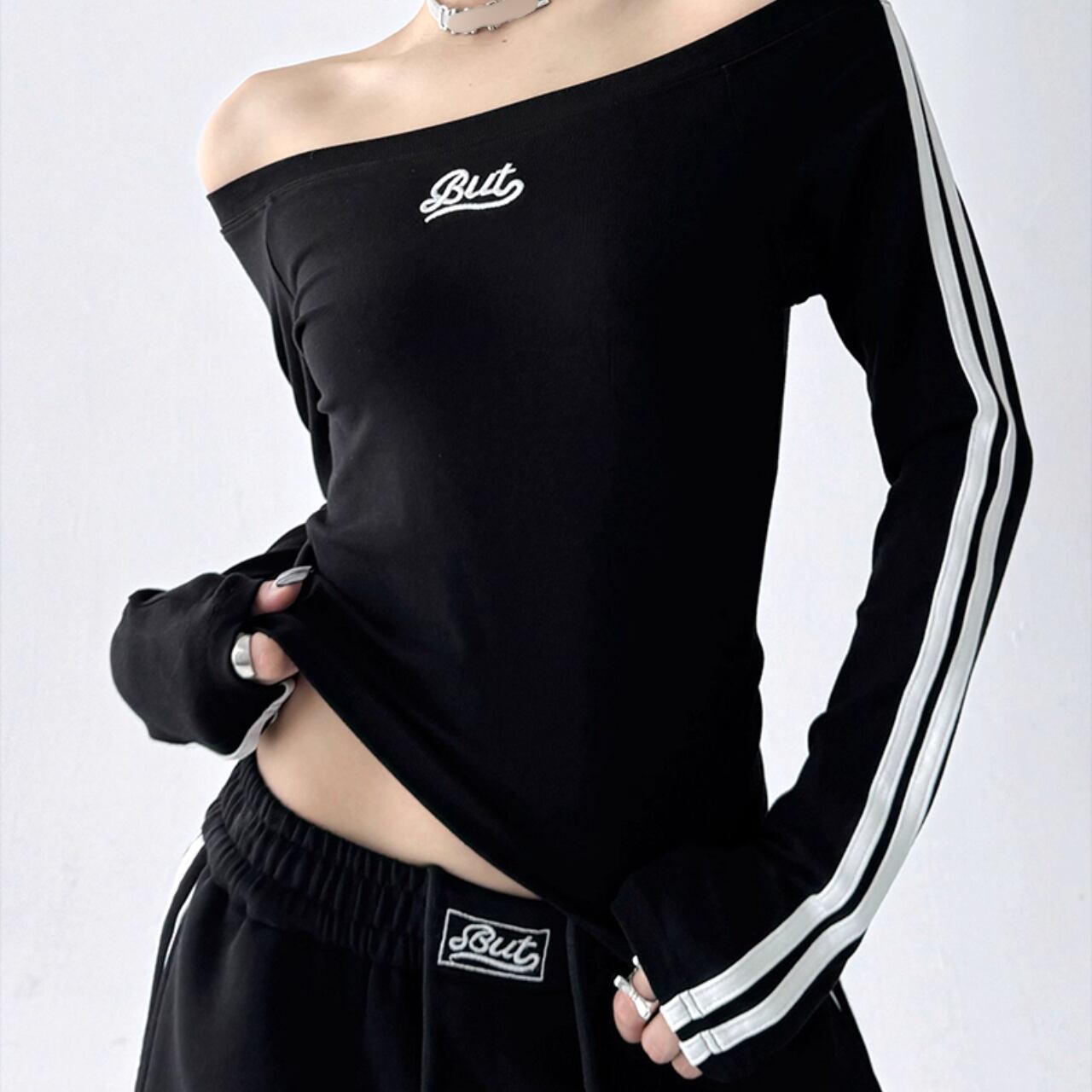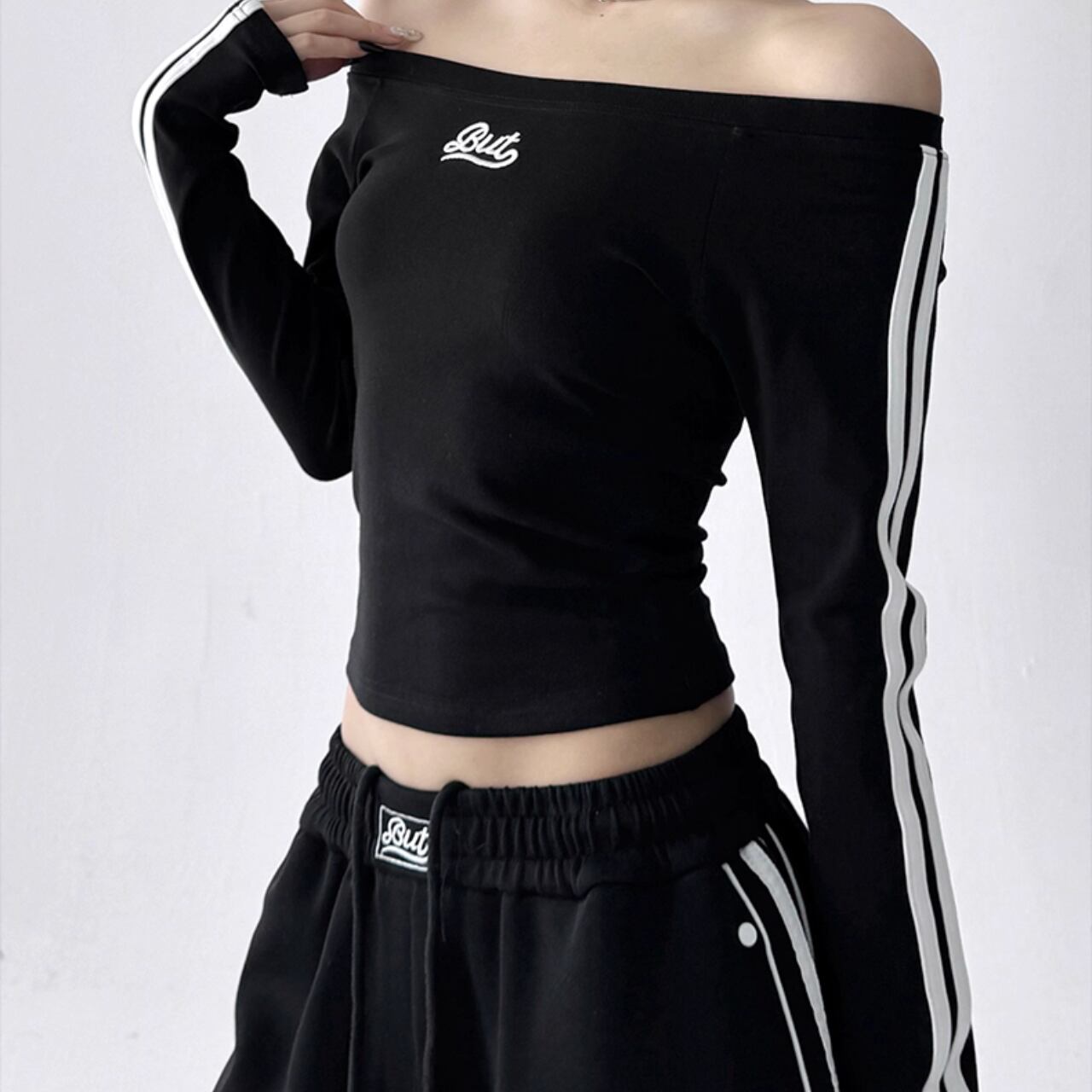 オフショルダーラインリブトップス【S/M/L/XL】B0411