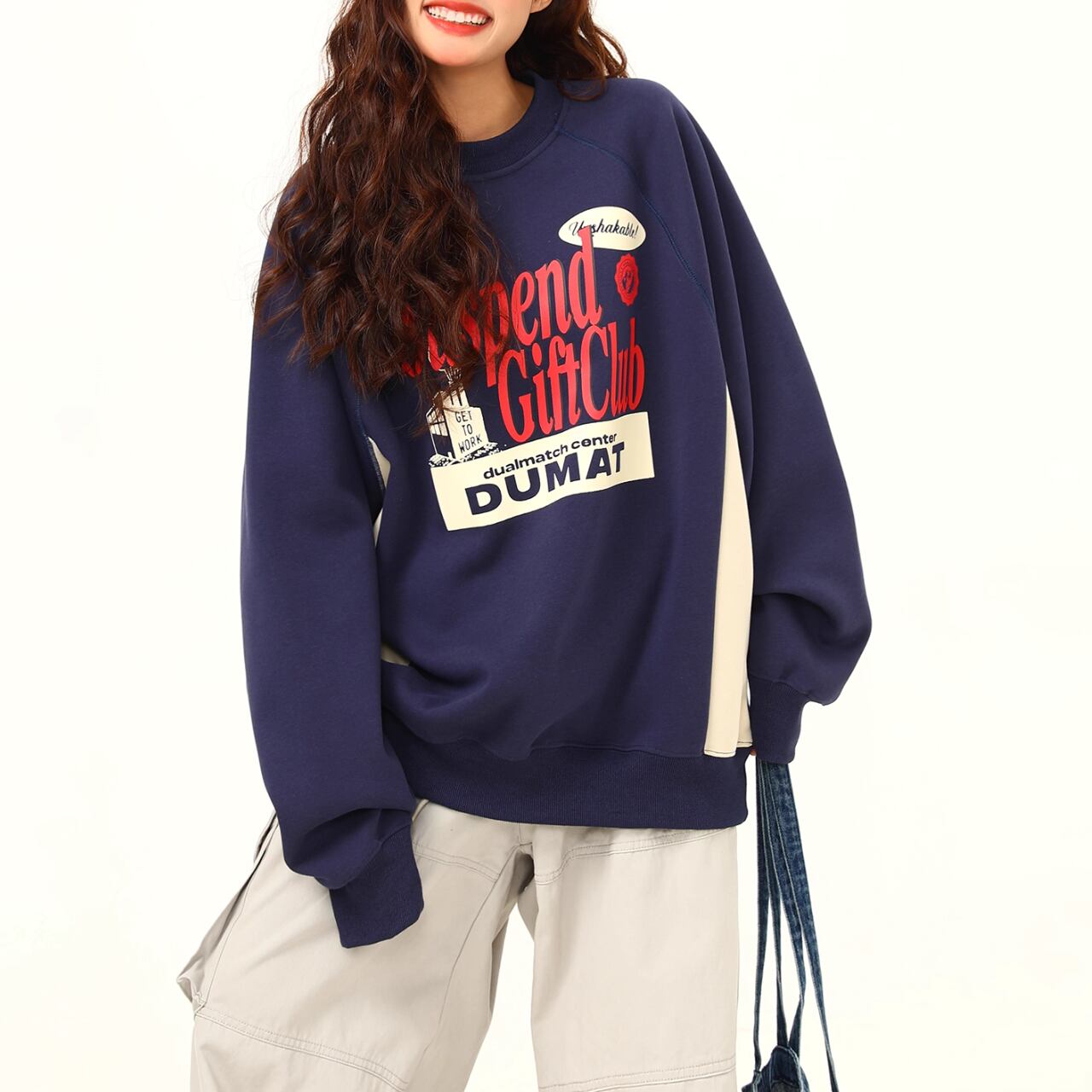 カレッジロゴプリント オーバーサイズスウェット【S/M/L/XL】B0425