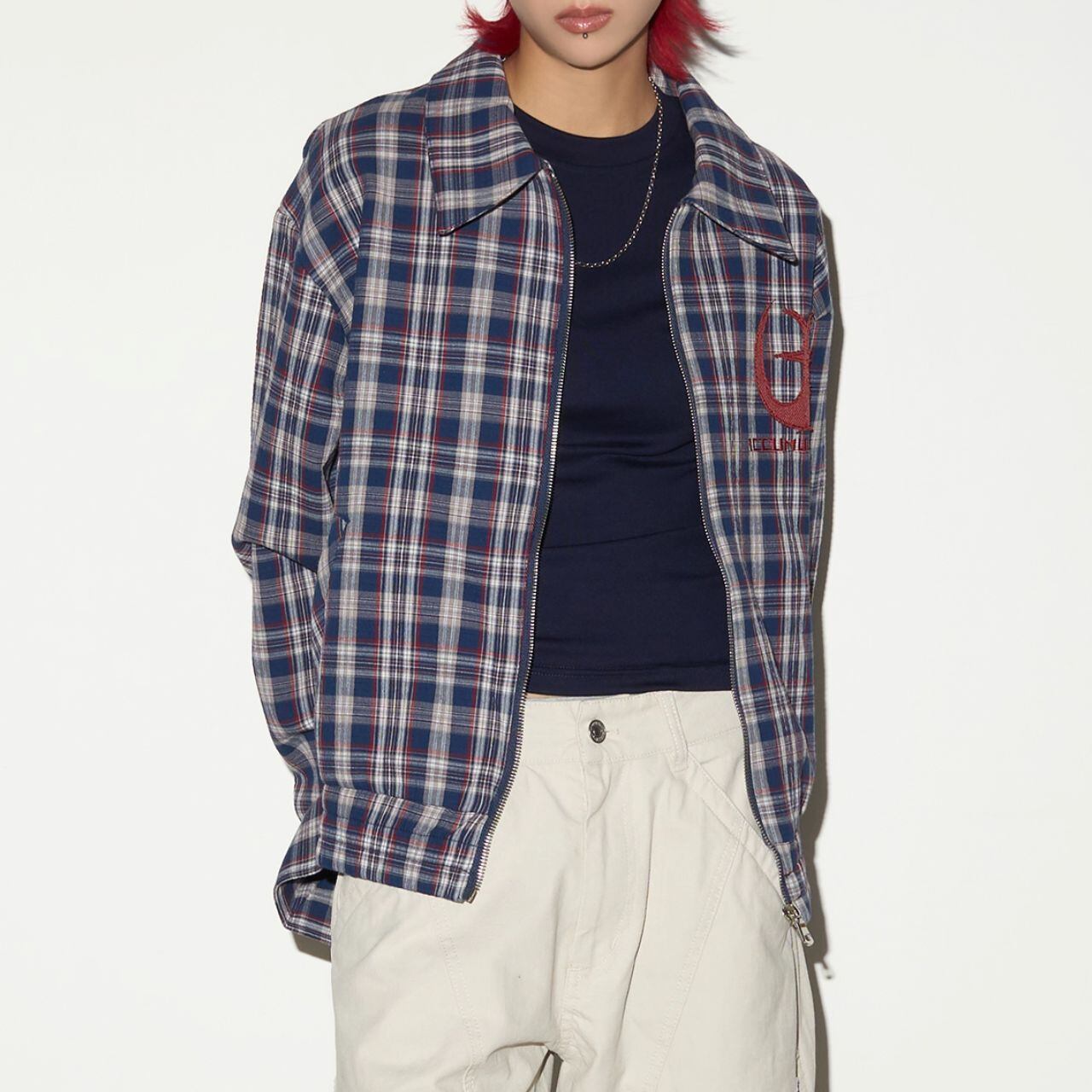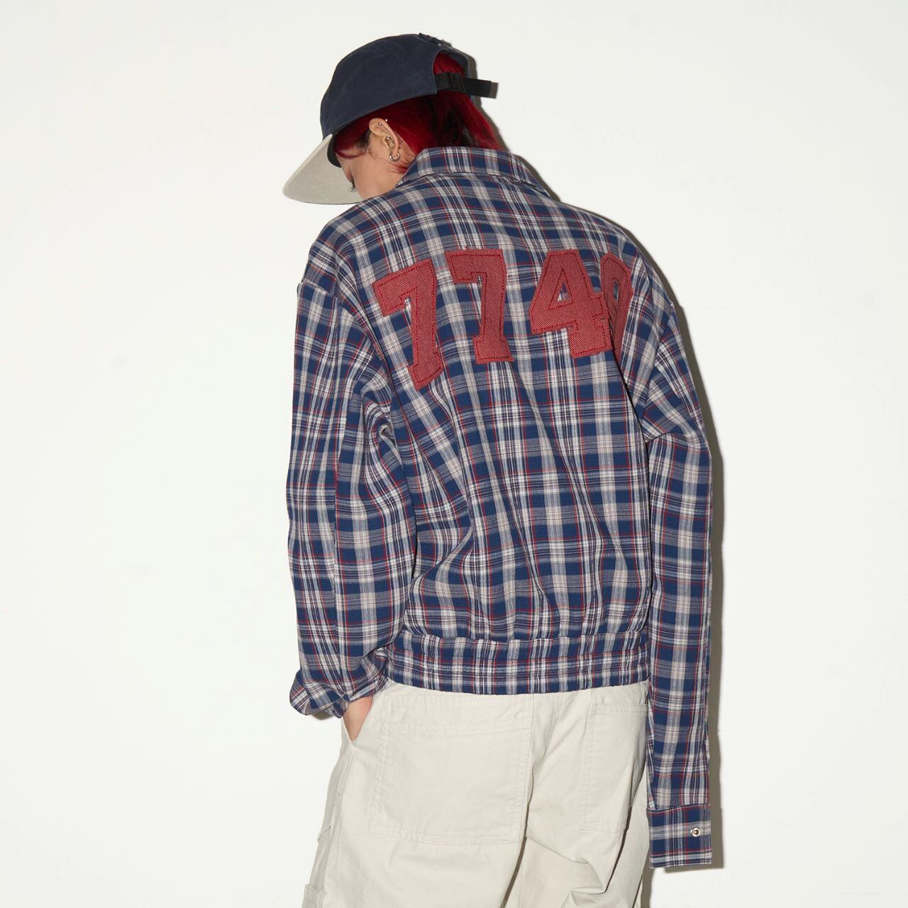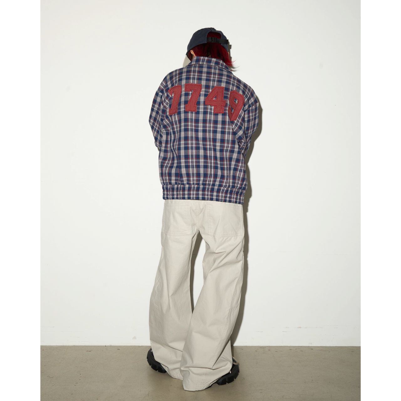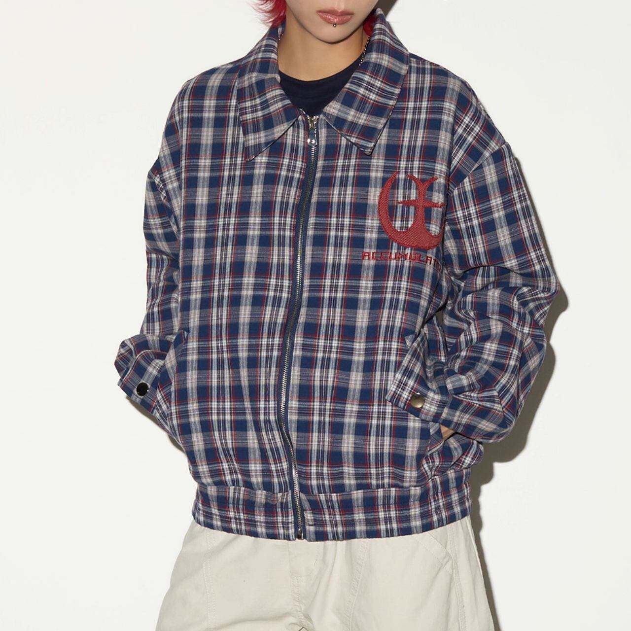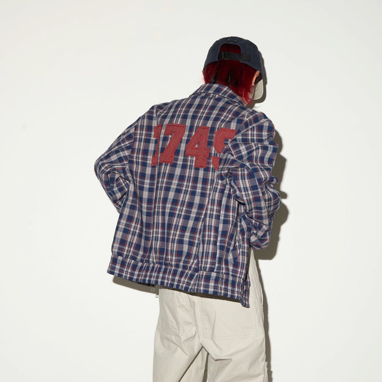 チェック柄 ロゴ刺繍&バックナンバー入りブルゾン 【M/L/XL】B0431