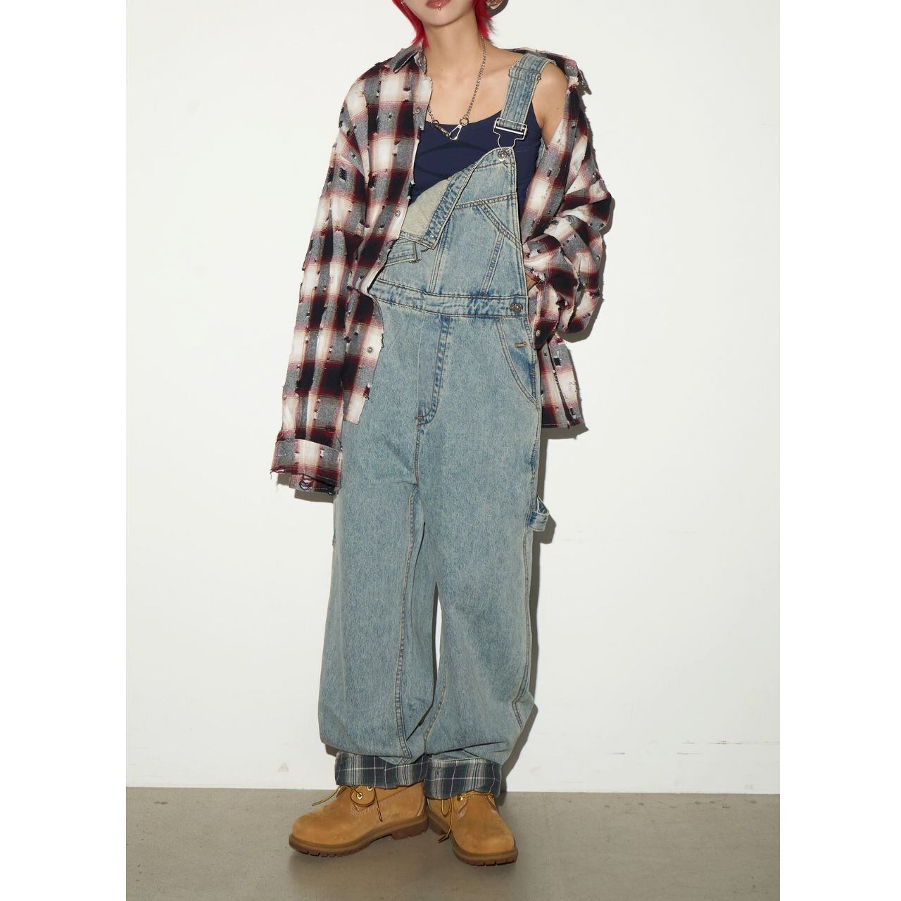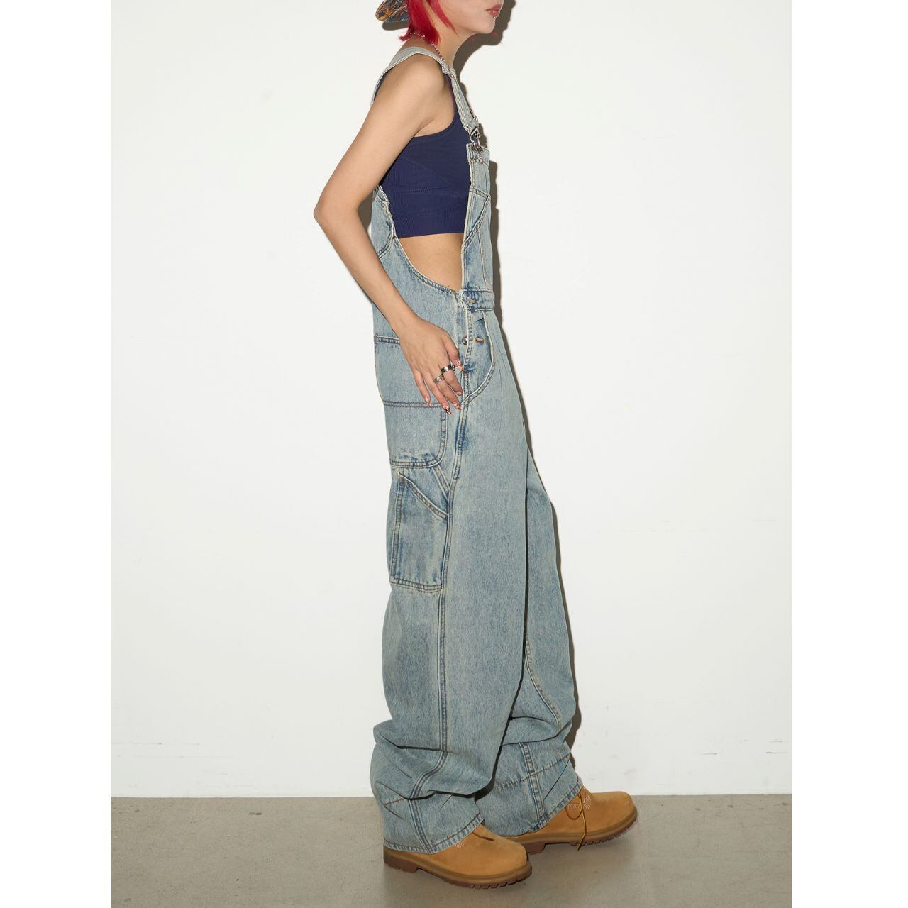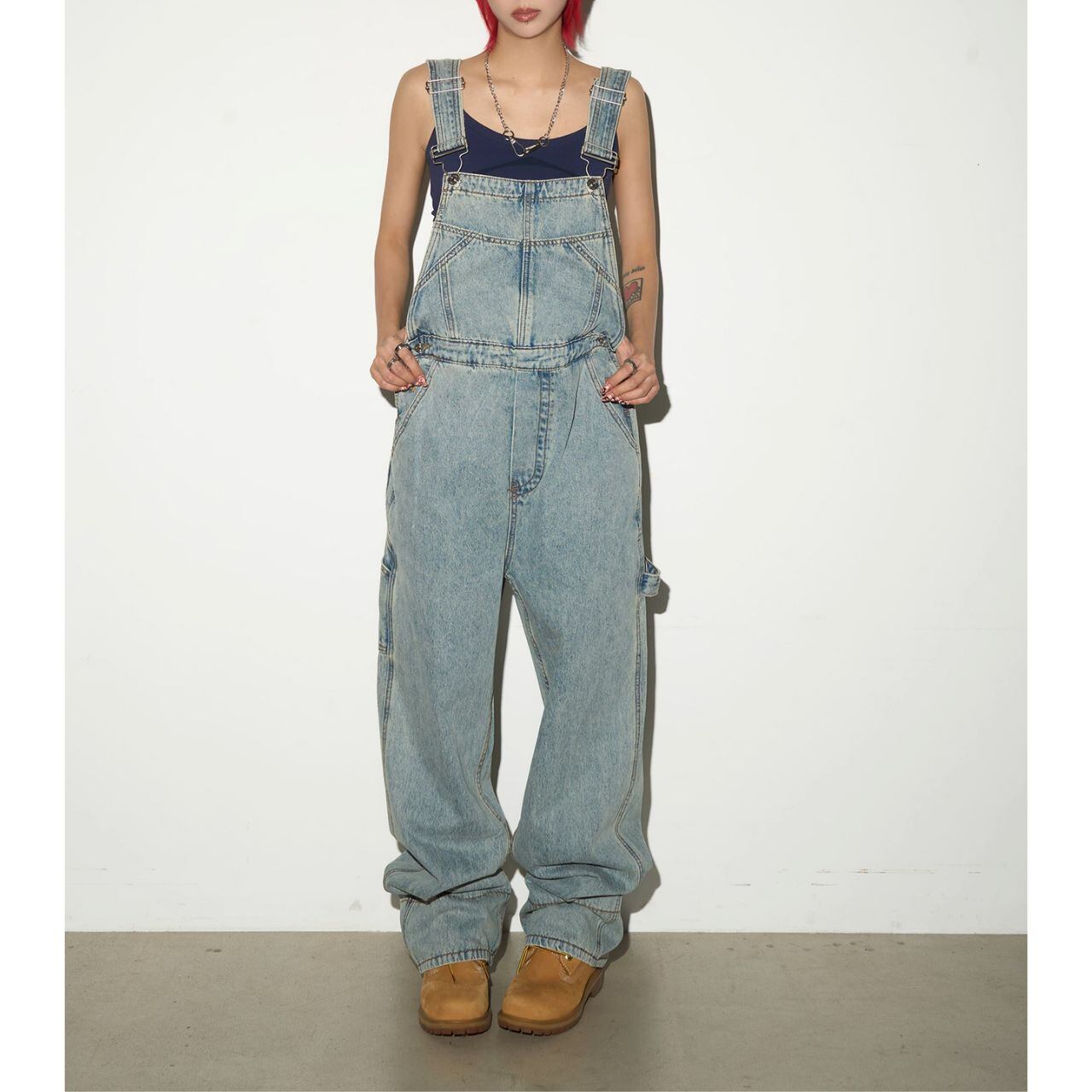 トレンドのワイドレッグシルエットが魅力のデニムサロペット。