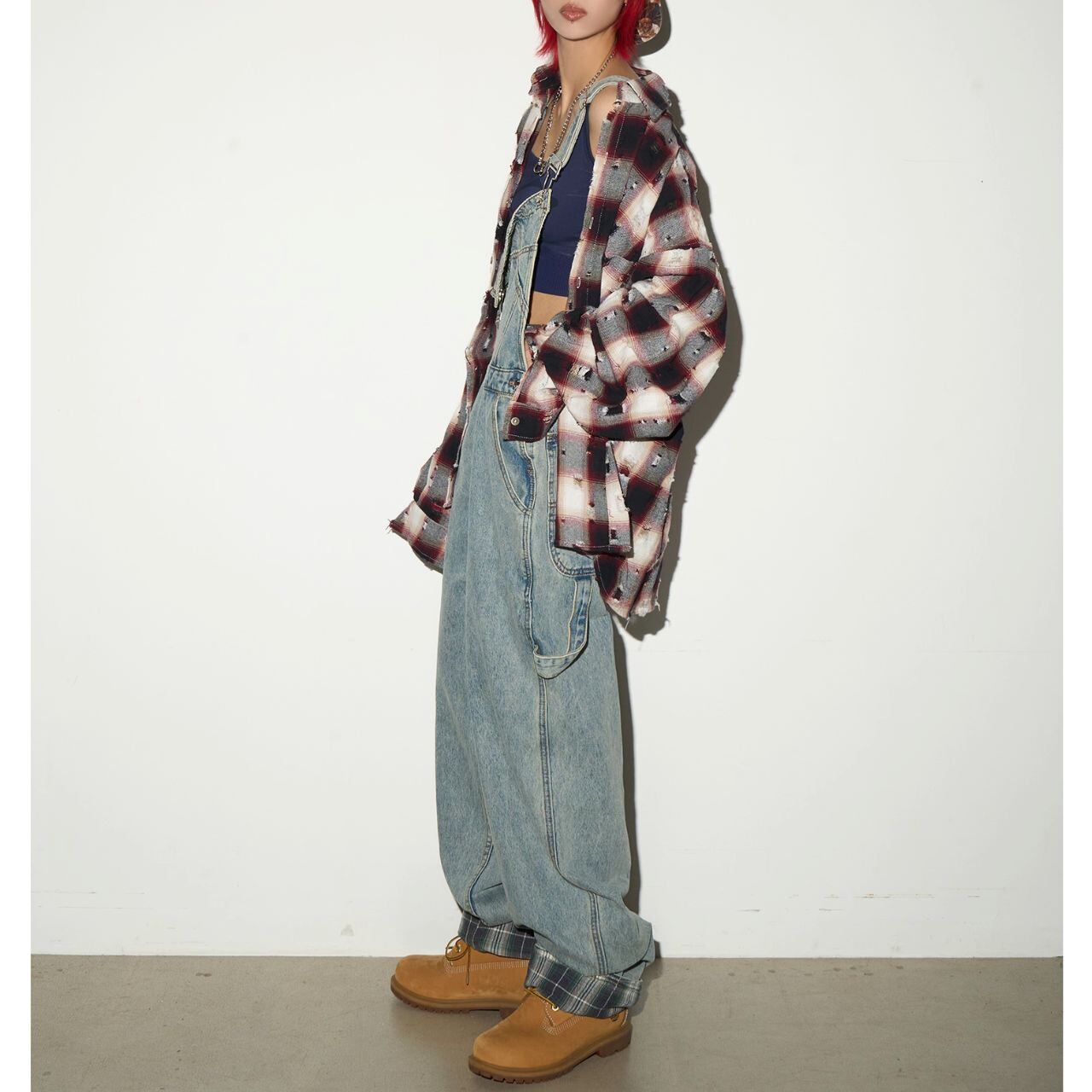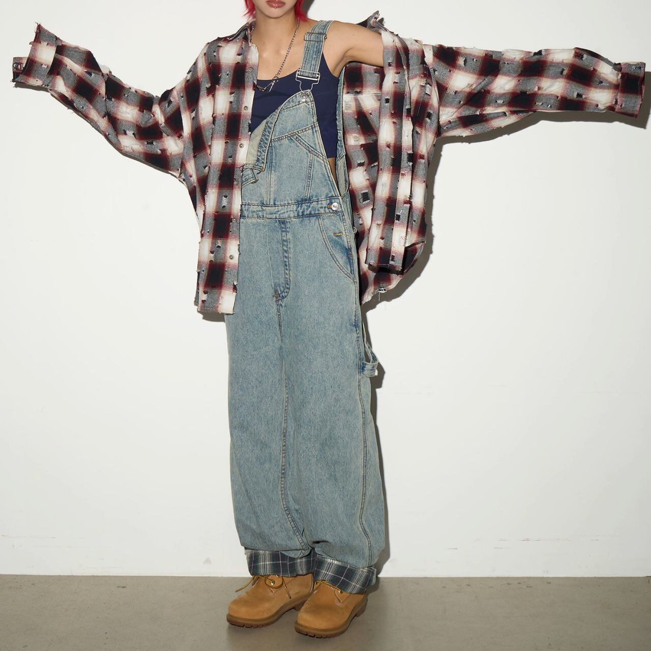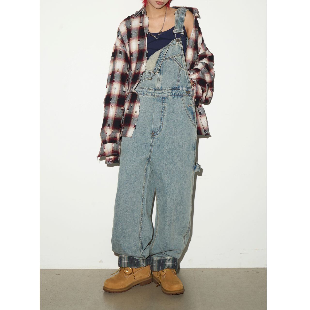 トレンドのワイドレッグシルエットが魅力のデニムサロペット。