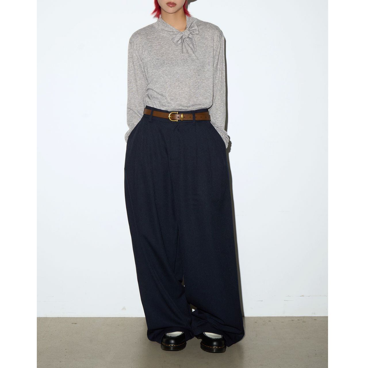 様々なトップスやインナーと合わせやすく、着回し力も抜群。