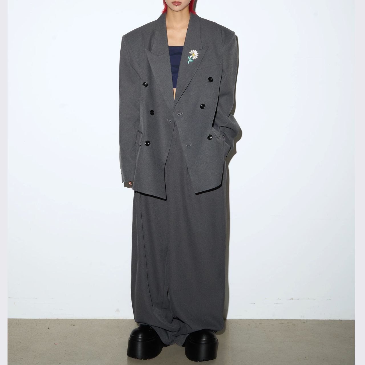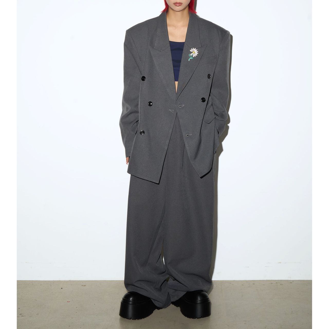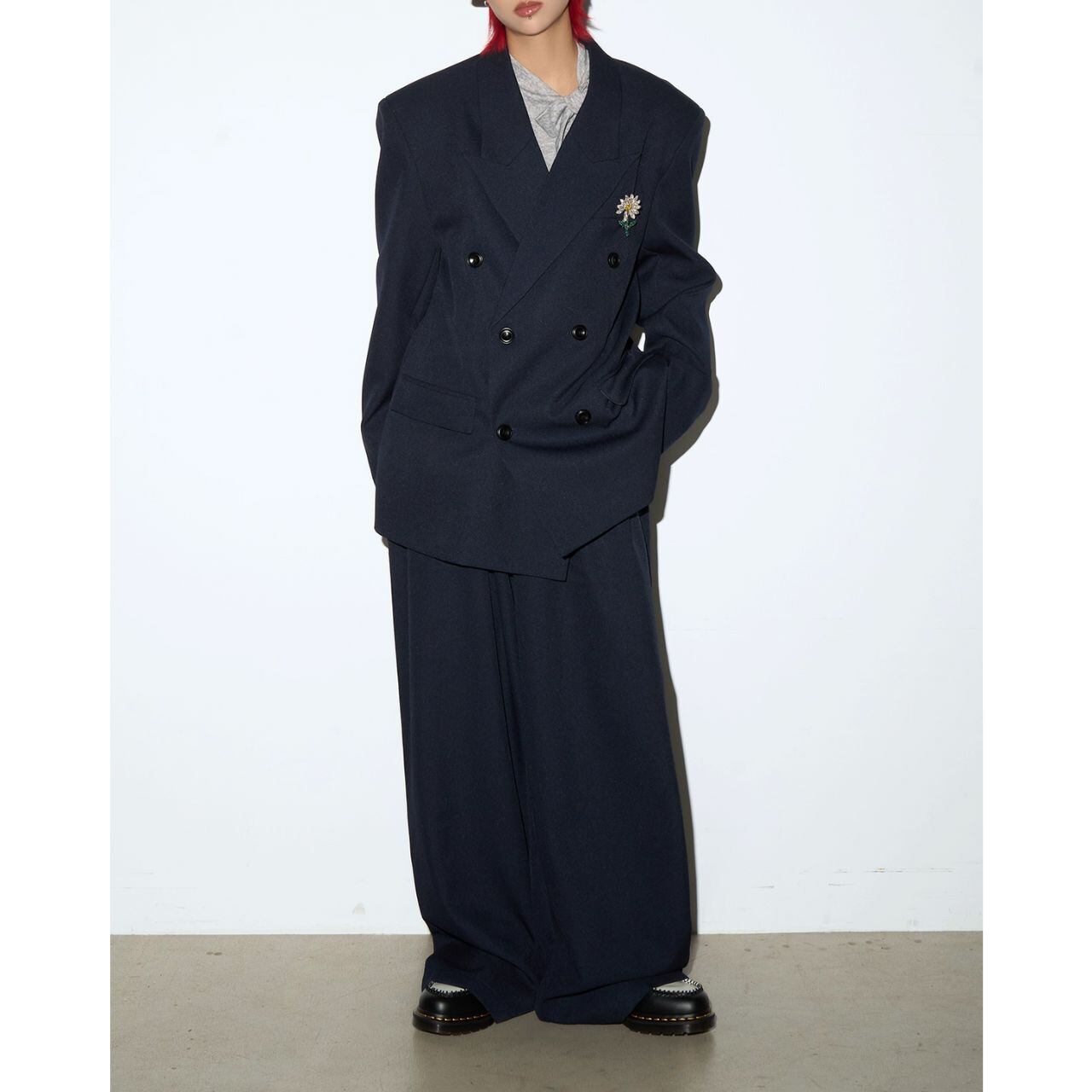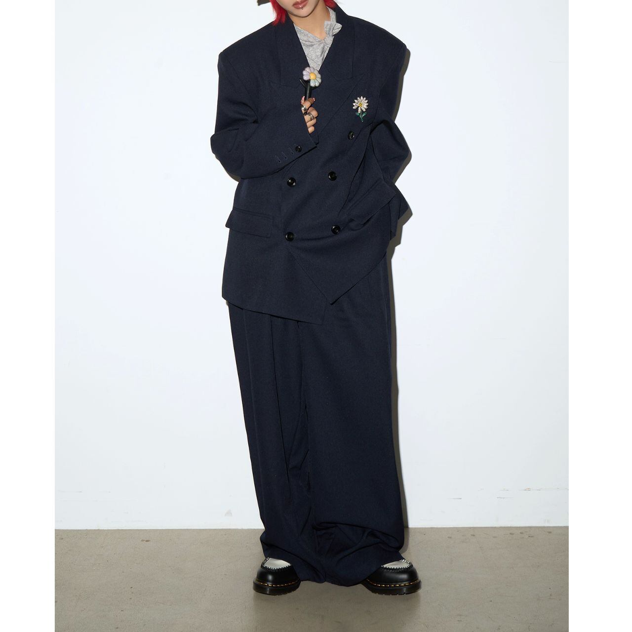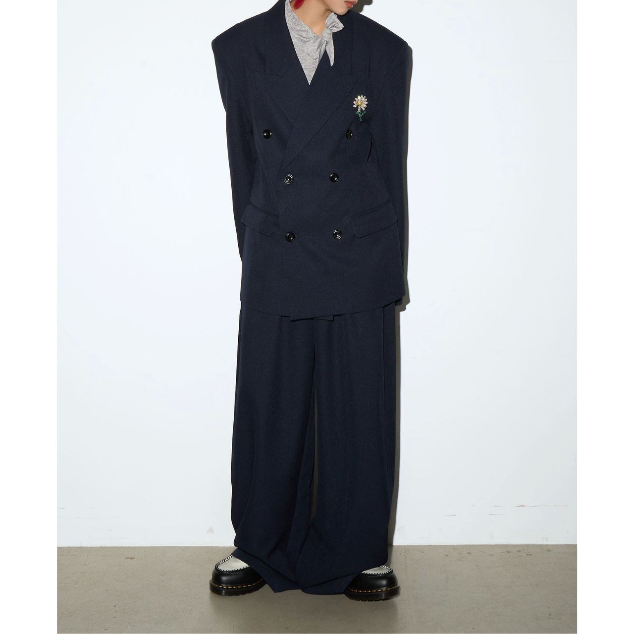ノッチドラペルダブルボタンジャケット&ワイドパンツセットアップ 【M/L/XL】B0428