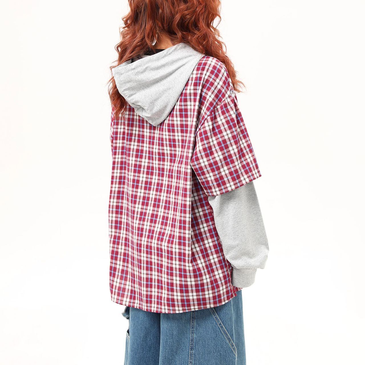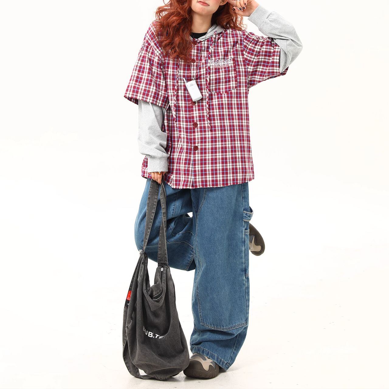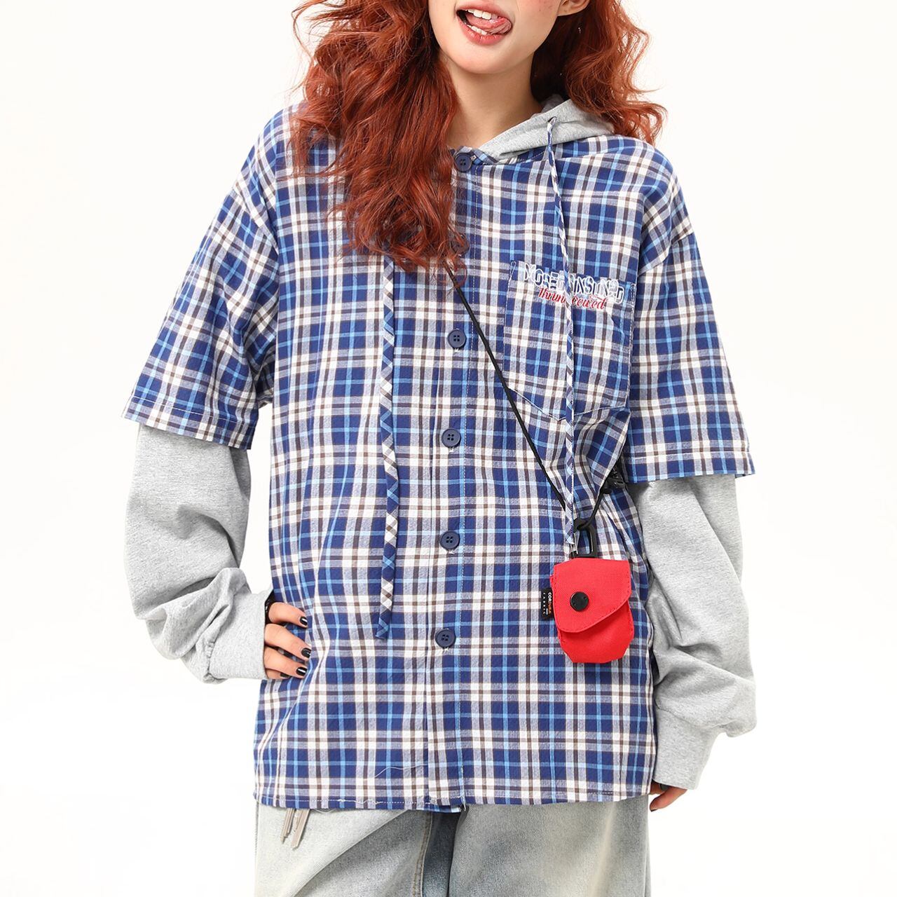 レイヤードデザインチェック柄シャツ【S/M/L】B0433