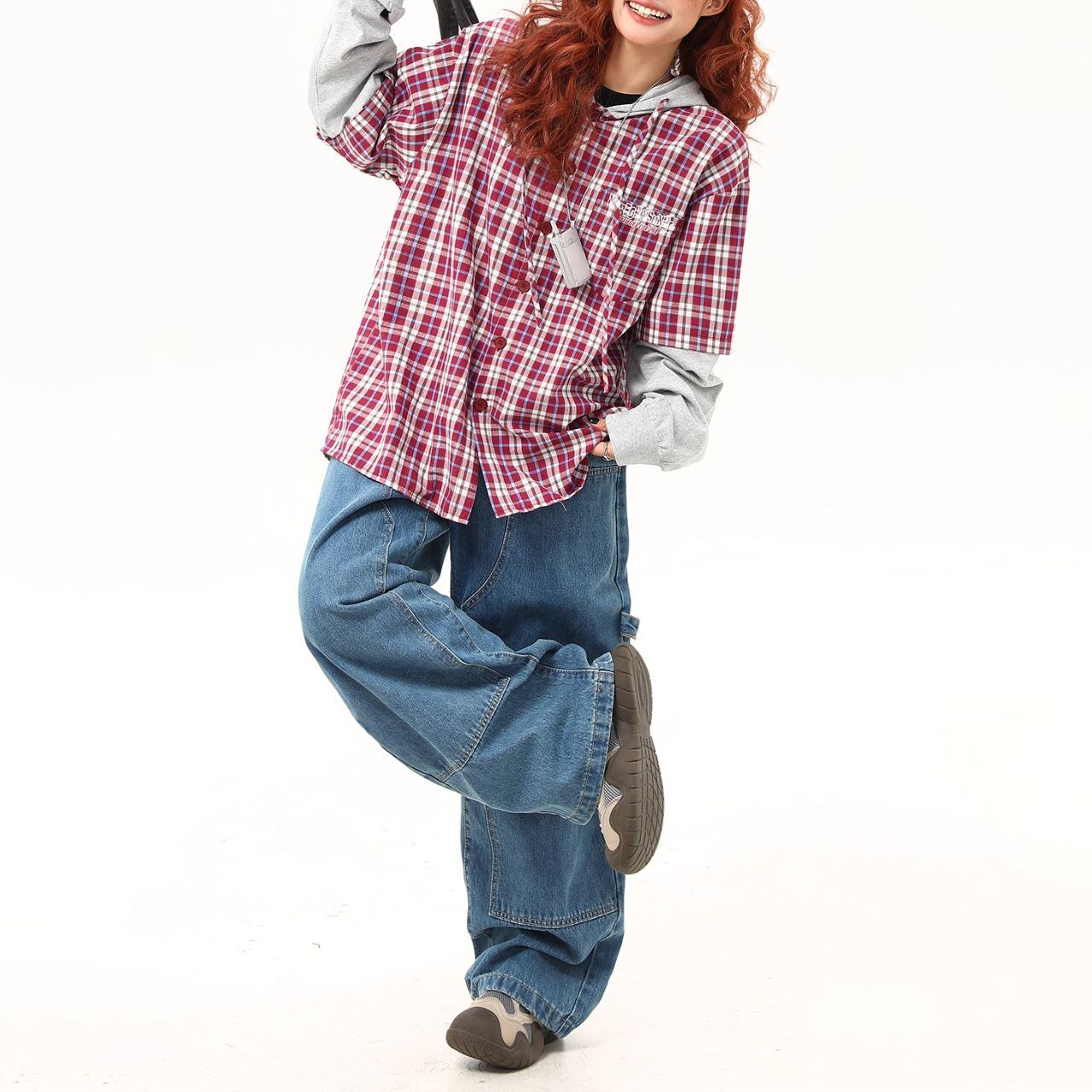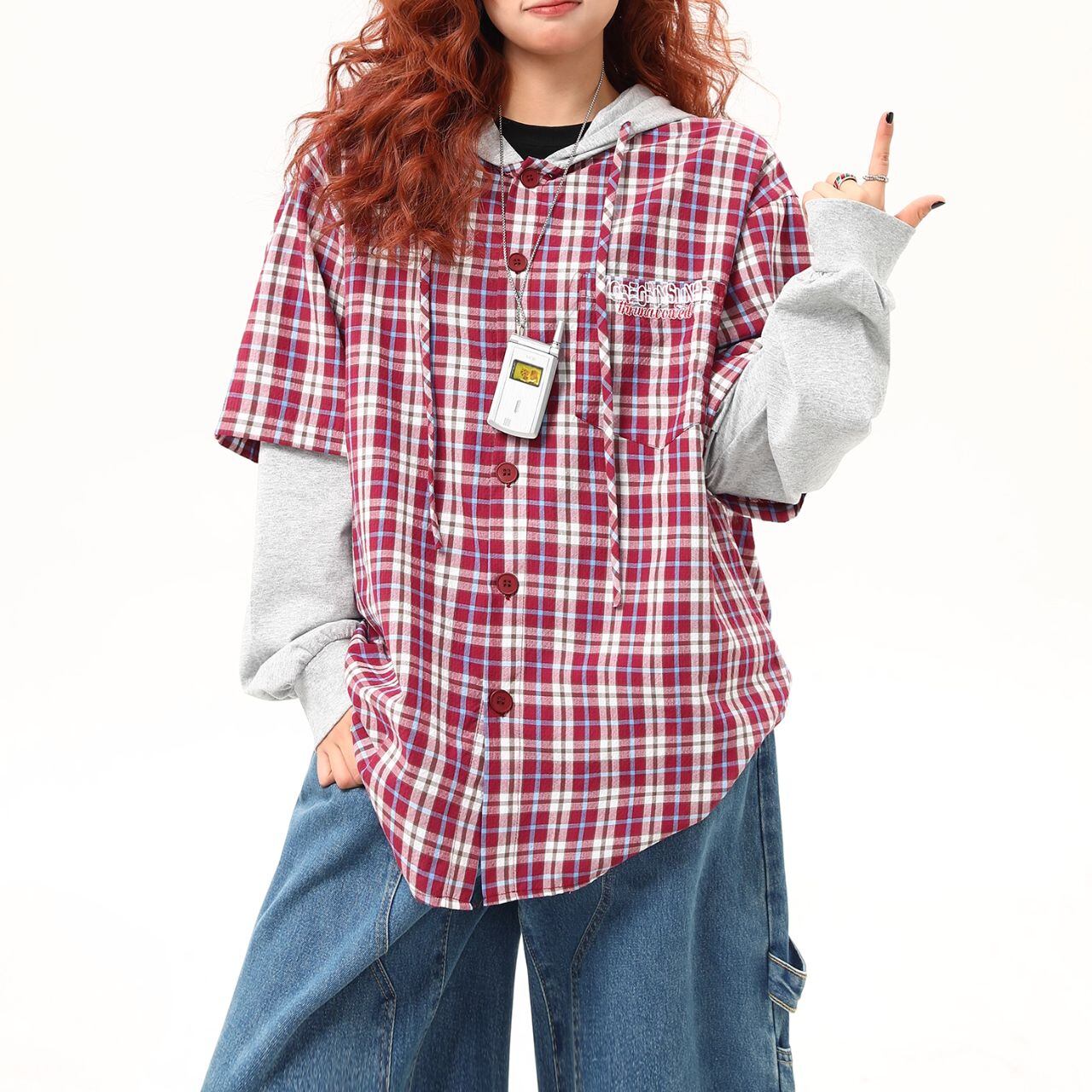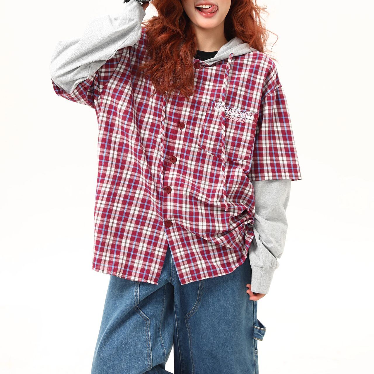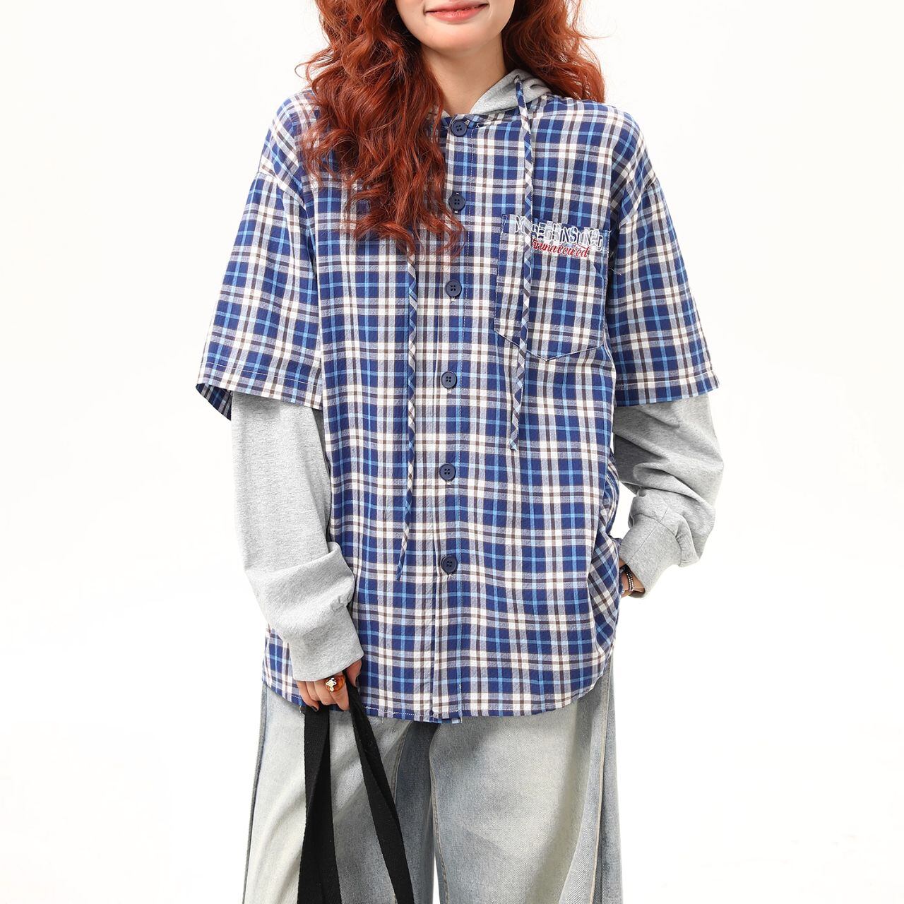 レイヤードデザインチェック柄シャツ【S/M/L】B0433
