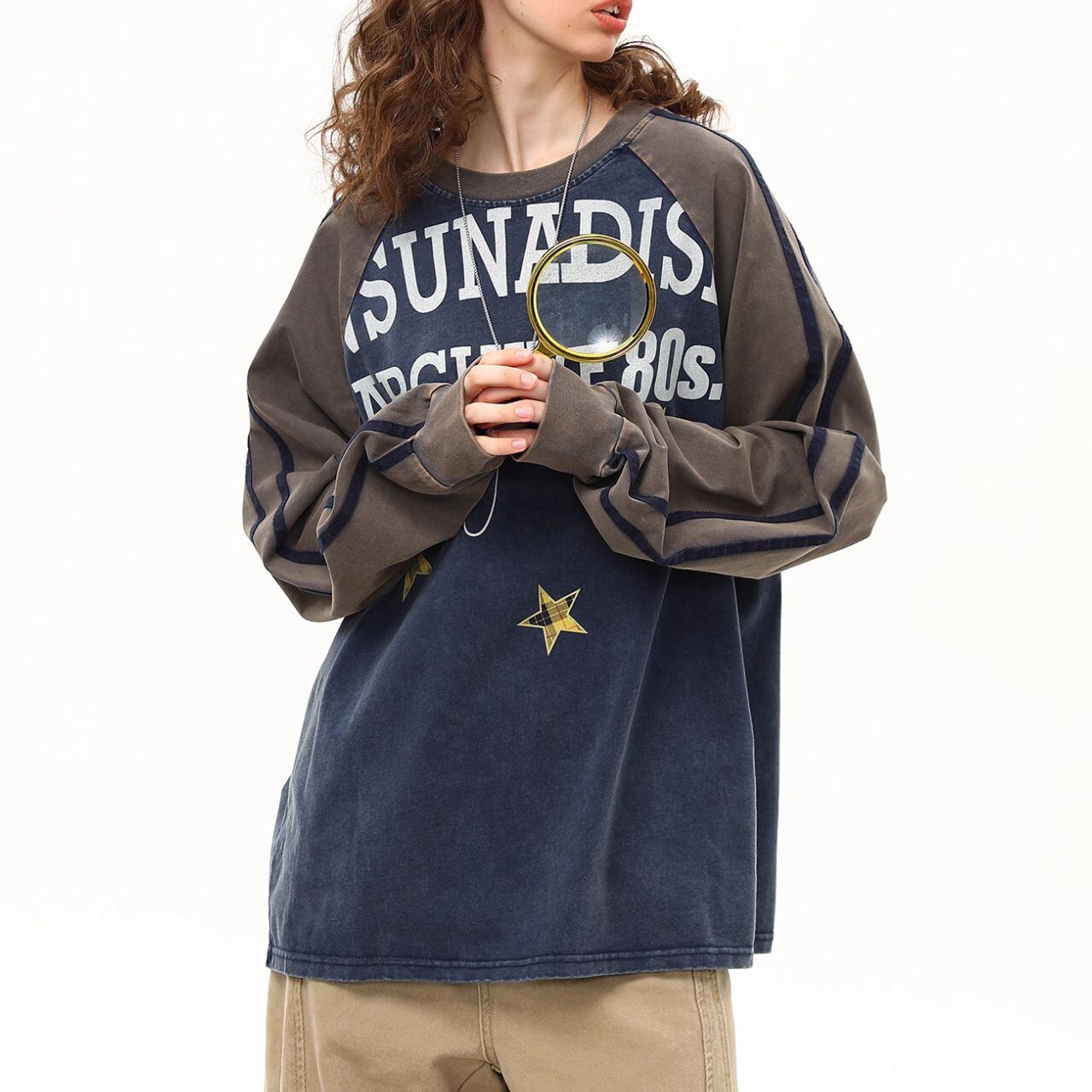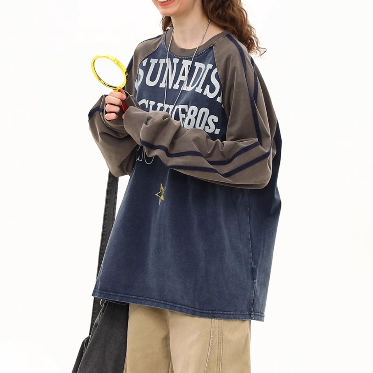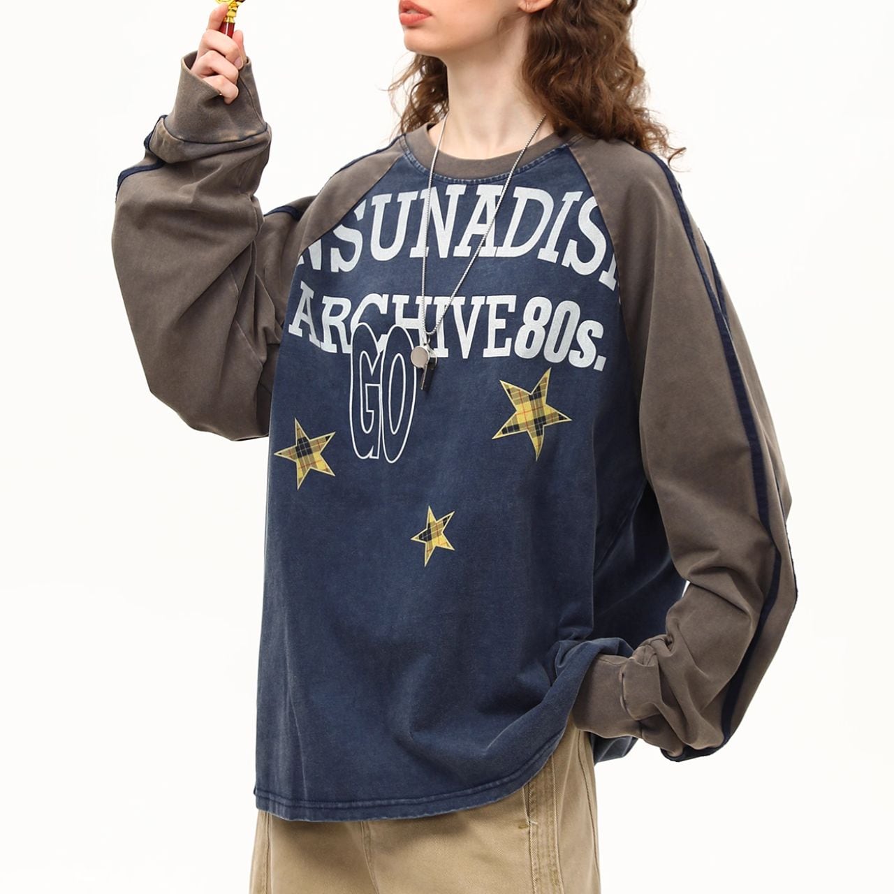 ヴィンテージライク プリントロングスリーブTシャツ【S/M/L/XL】B0442