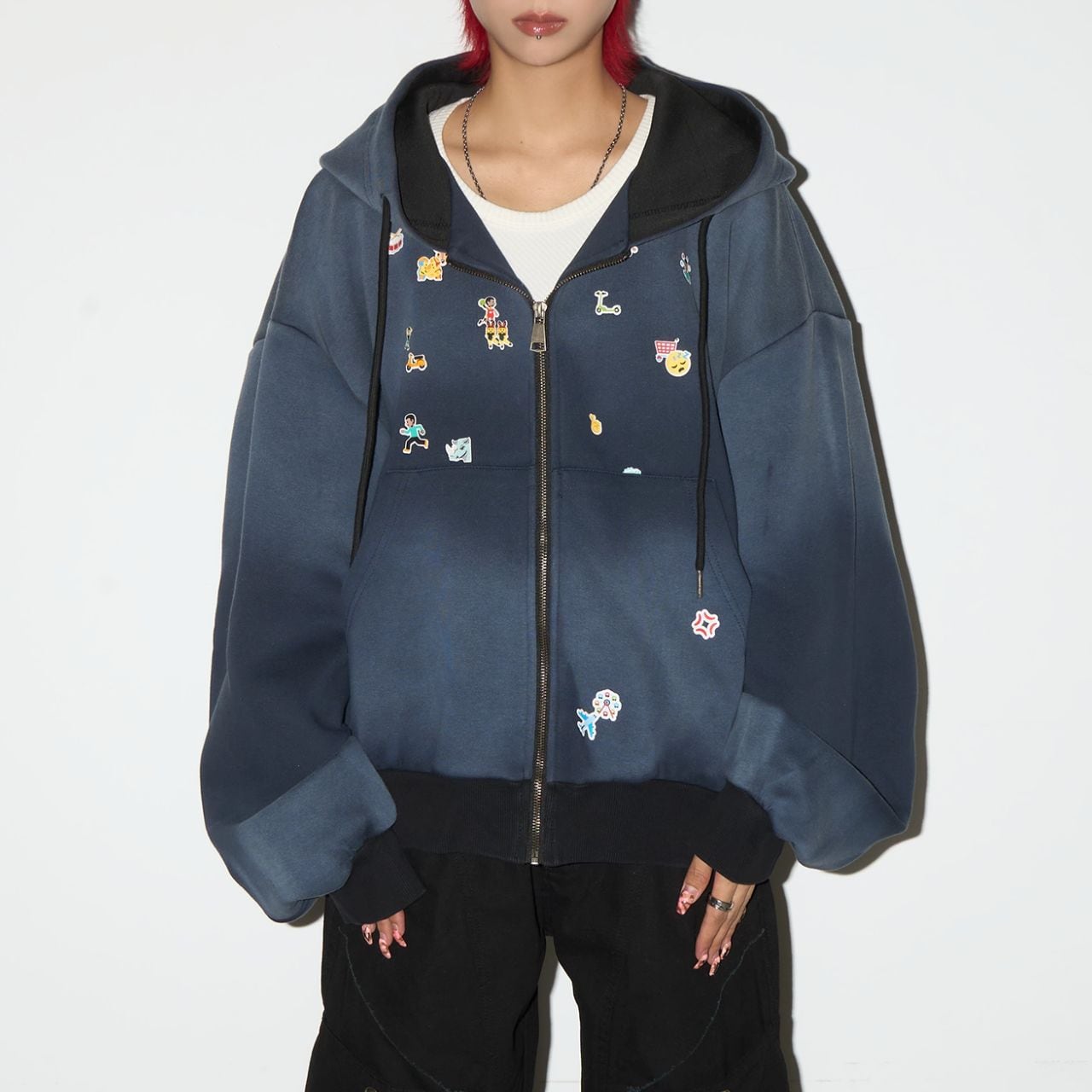 ステッカーデザインフーデッドパーカー 【M/L/XL】B0450